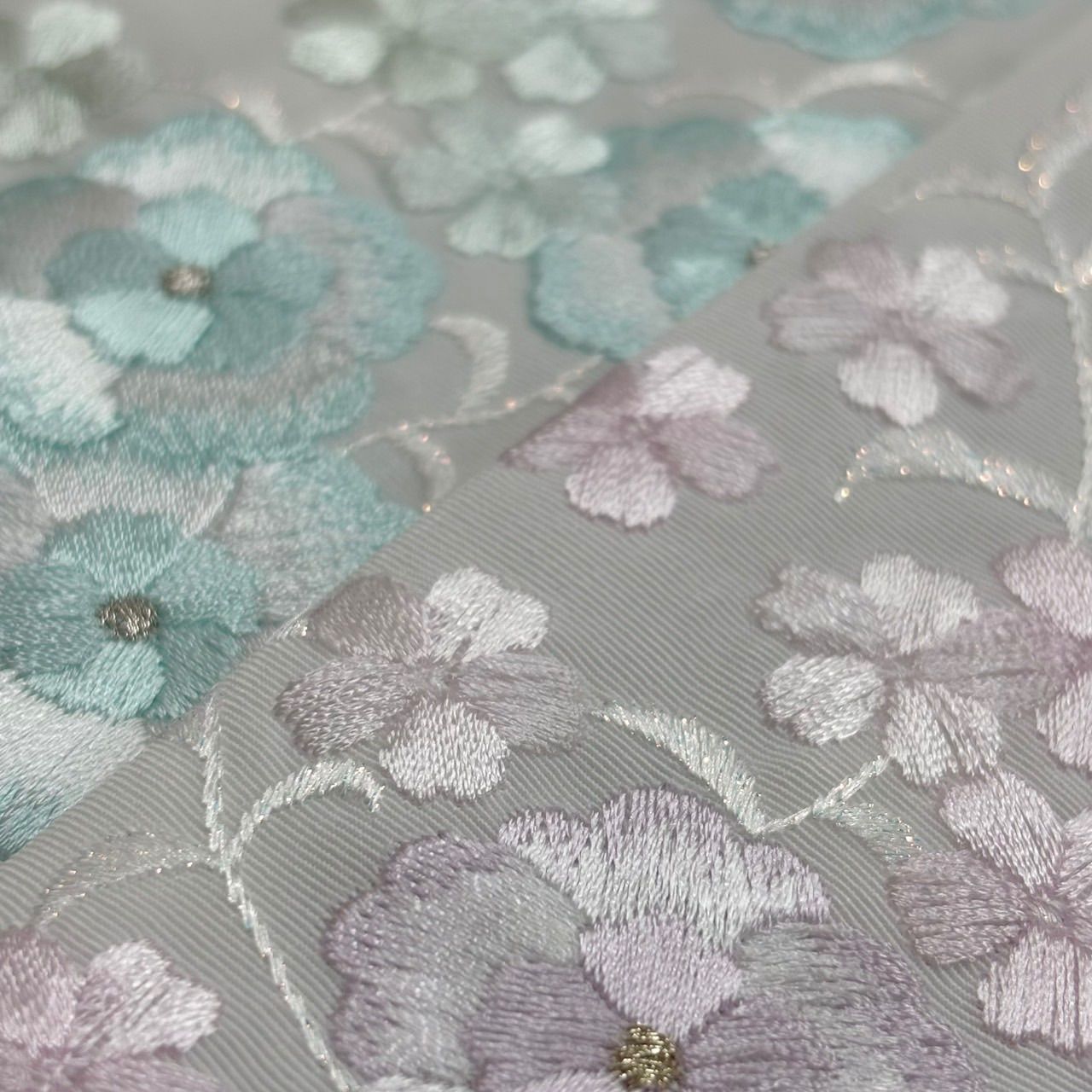 唐草の部分にはラメ入りの糸を使用しております。