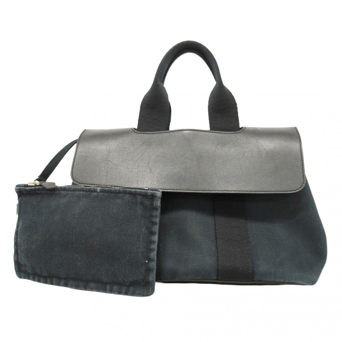 【5pb1981-h】エルメス ハンドバッグ ヴァルパライソPM トワルシェブロン ブラック シルバー金具【中古】レディース