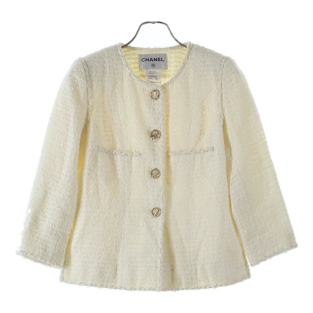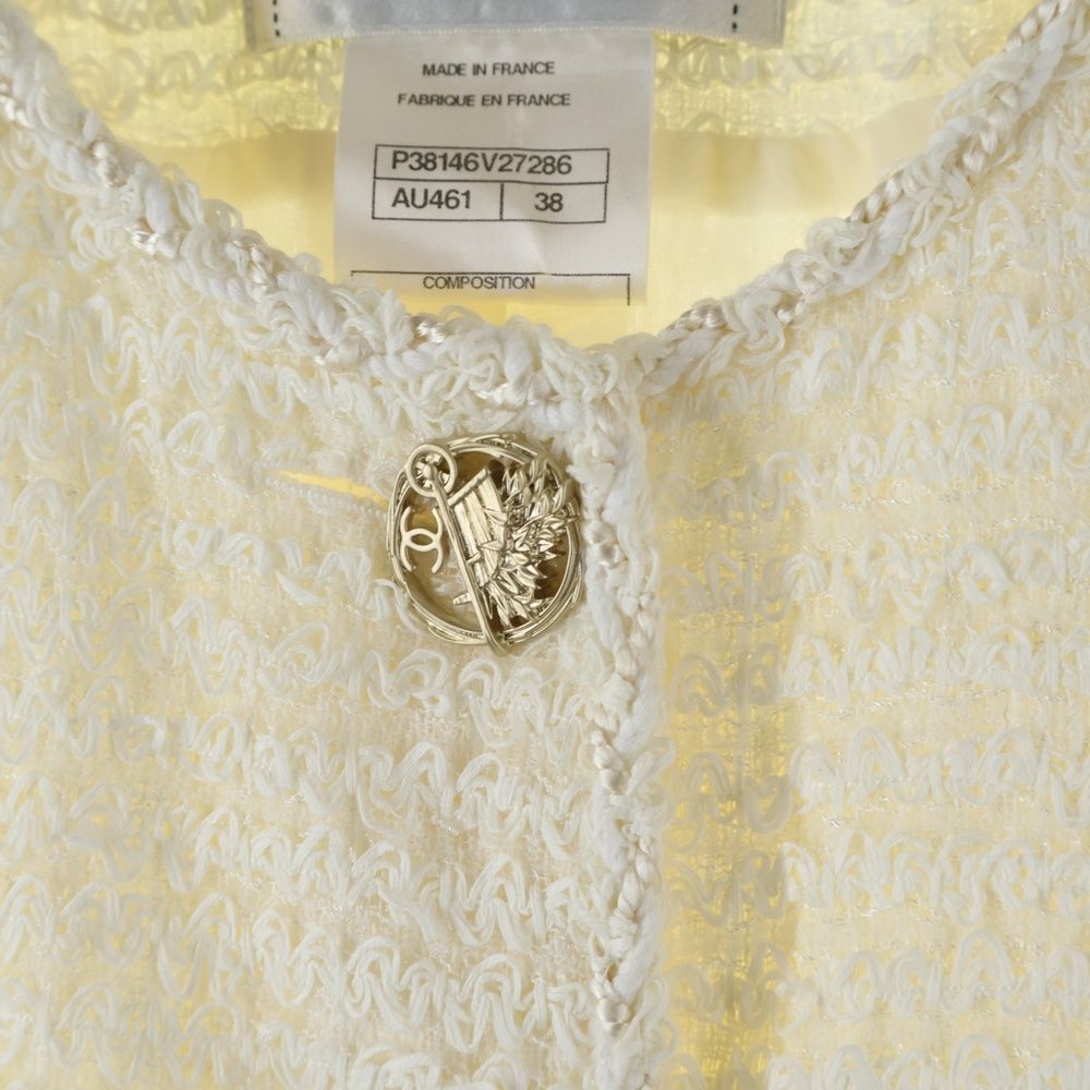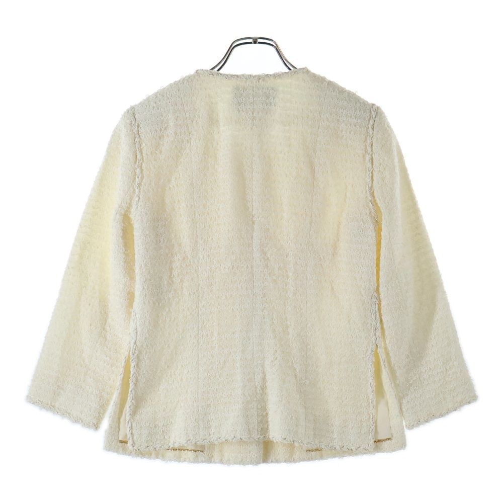 【品名】ココマーク/ガーデニングカートモチーフボタン ツイードジャケット ホワイト P38146V2786