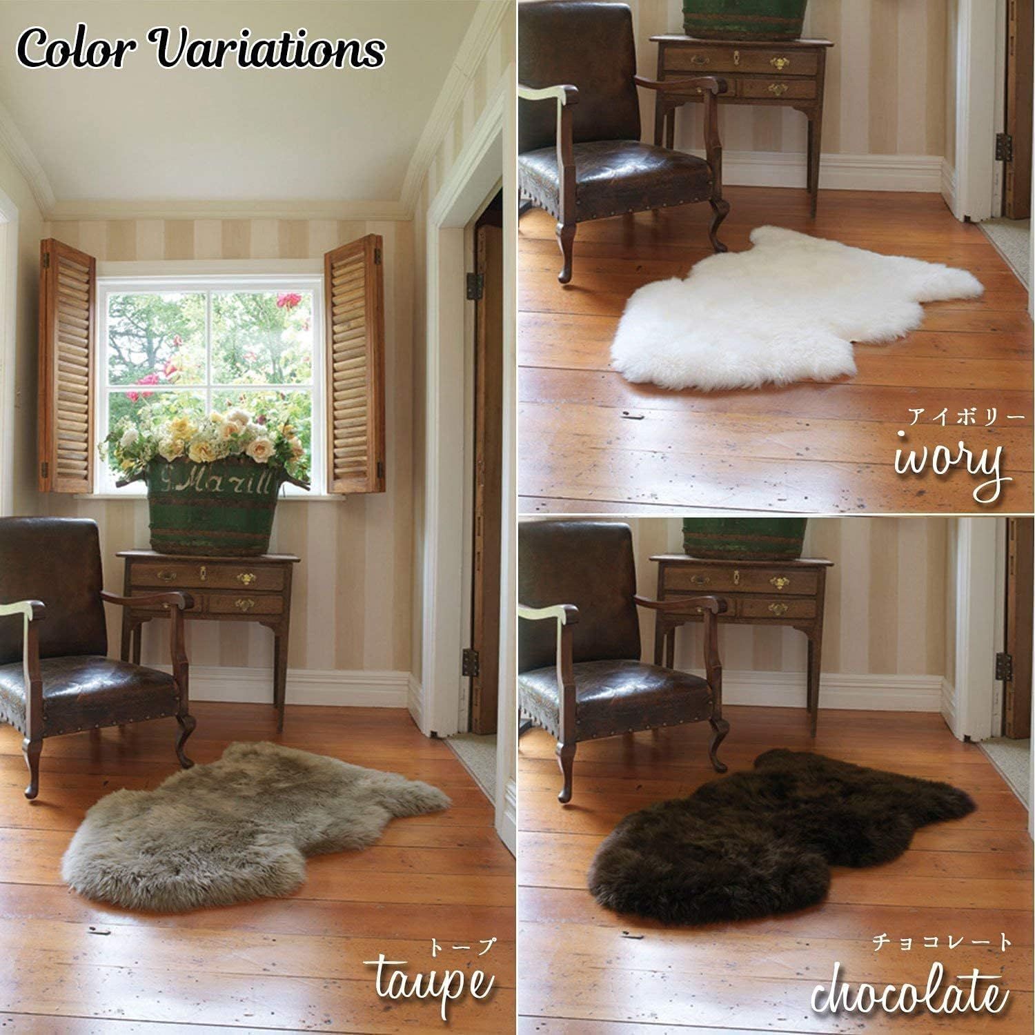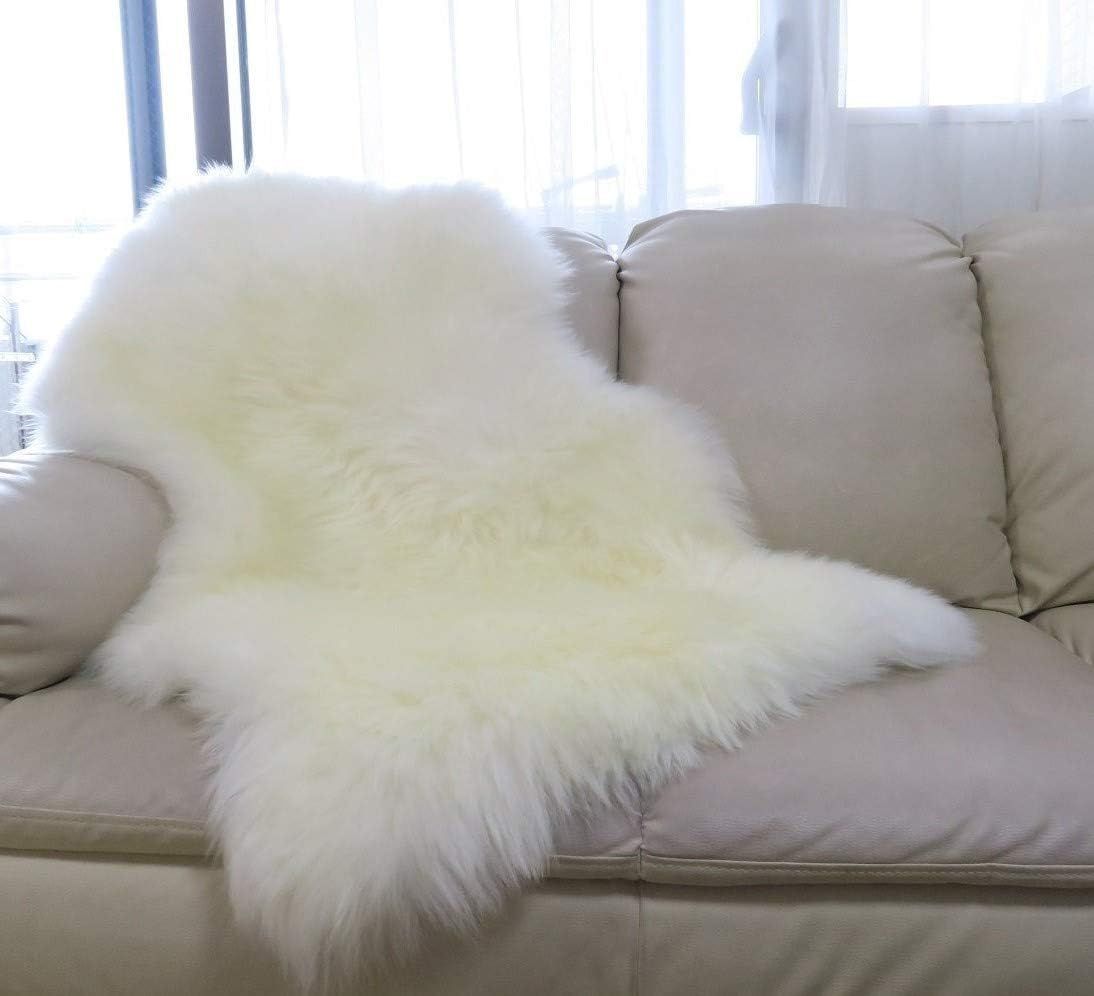 FURFURMOUTON ムートンラグ 天然 オーストラリア産 もこもこ ふんわり 高級 ラグ マット リビング ソファー マット 車用(1匹物) (ホワイト系)