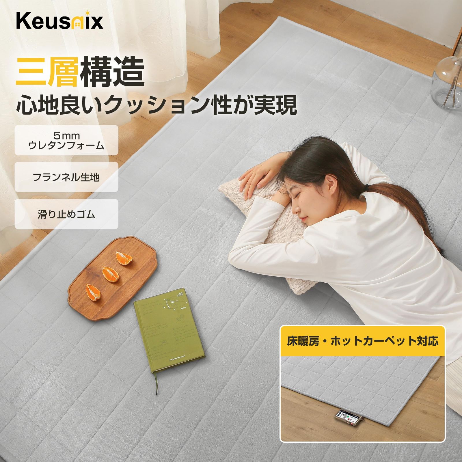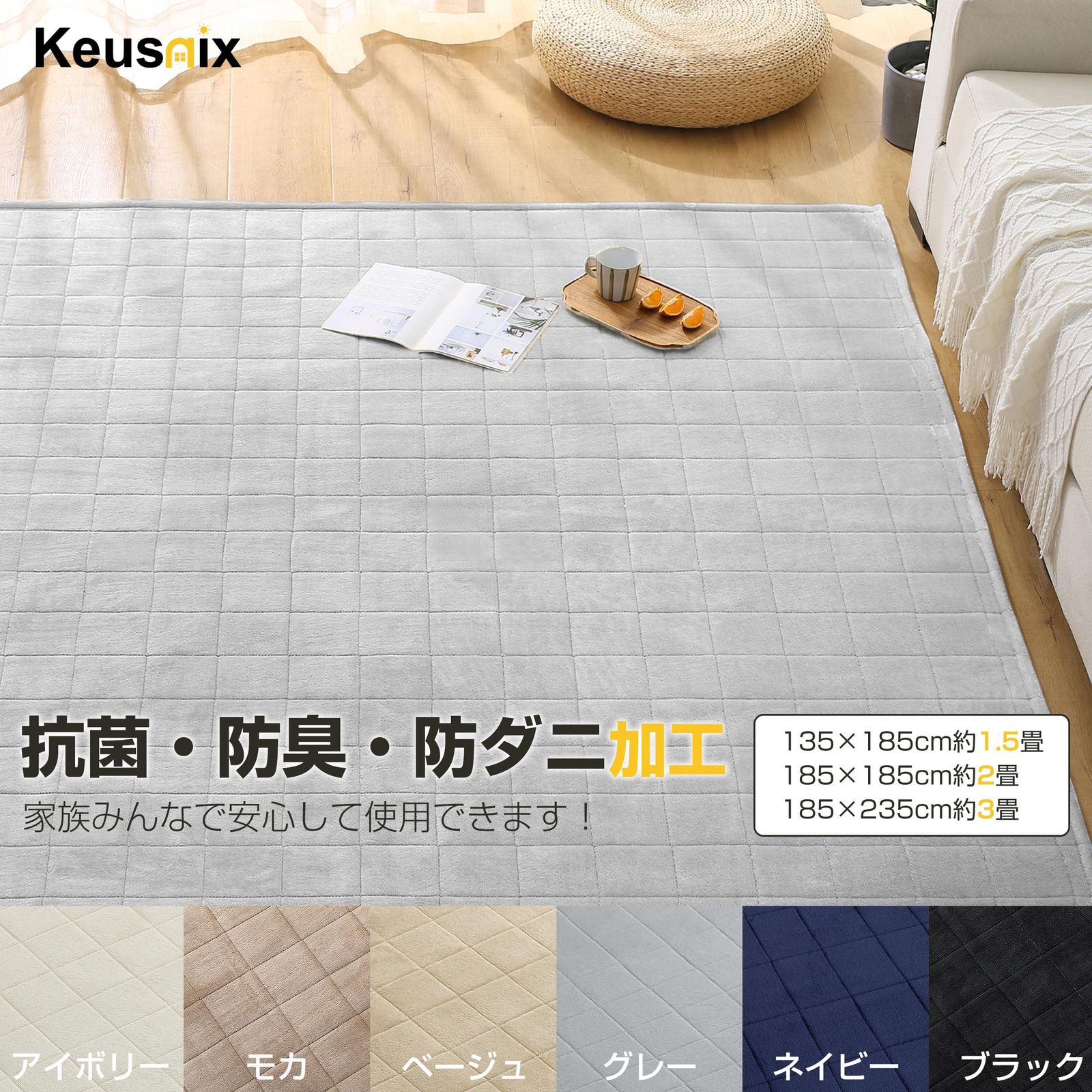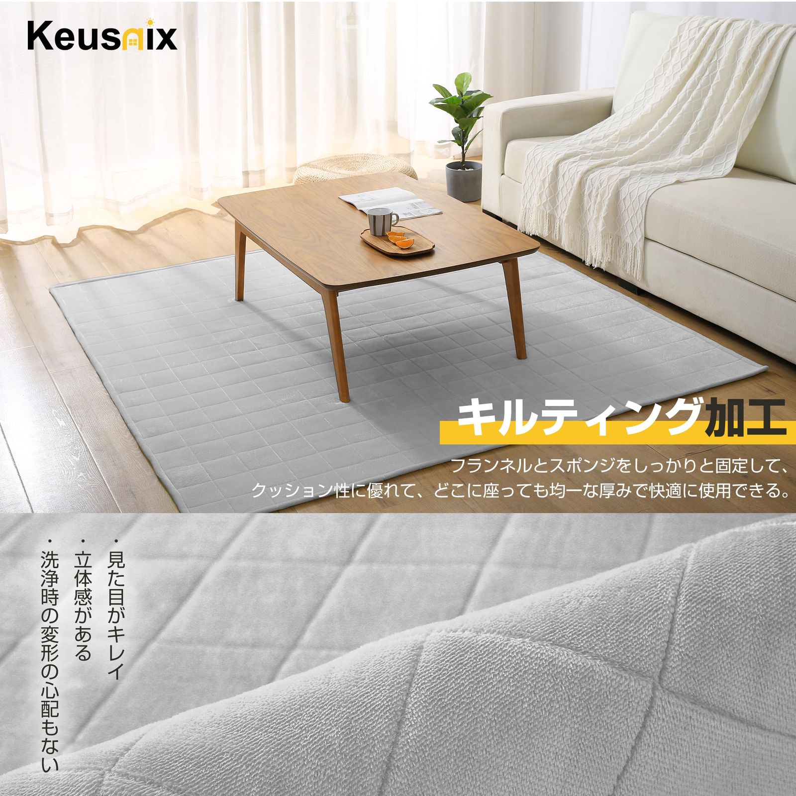 Keusnix ラグ カーペット キルトラグ 滑り止め付き 洗える ラグマット 135×185cm 約1.5畳 絨毯 オールシーズン 抗菌防臭 ふわふわ肌触り フランネルラグ 床暖房 ホットカーペット対応 無地 グレー