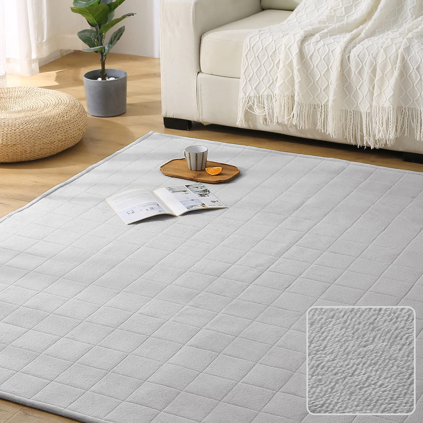 ??【フランネルラグ・オールシーズン活躍!】当キルトラグの表面は柔らかいマイクロファイバーを採用し、軽くて速乾性に優れているので、ふわふわの肌触りは思わず寝転がってくつろぎたくなります。夏はサラッとした肌触りが実現、寒い冬でも踏み心地が暖かい。毛足の向きによって色の見え方が変わるので、いろんな表情を楽しめます。ぜひこの手触りをお楽しみください。