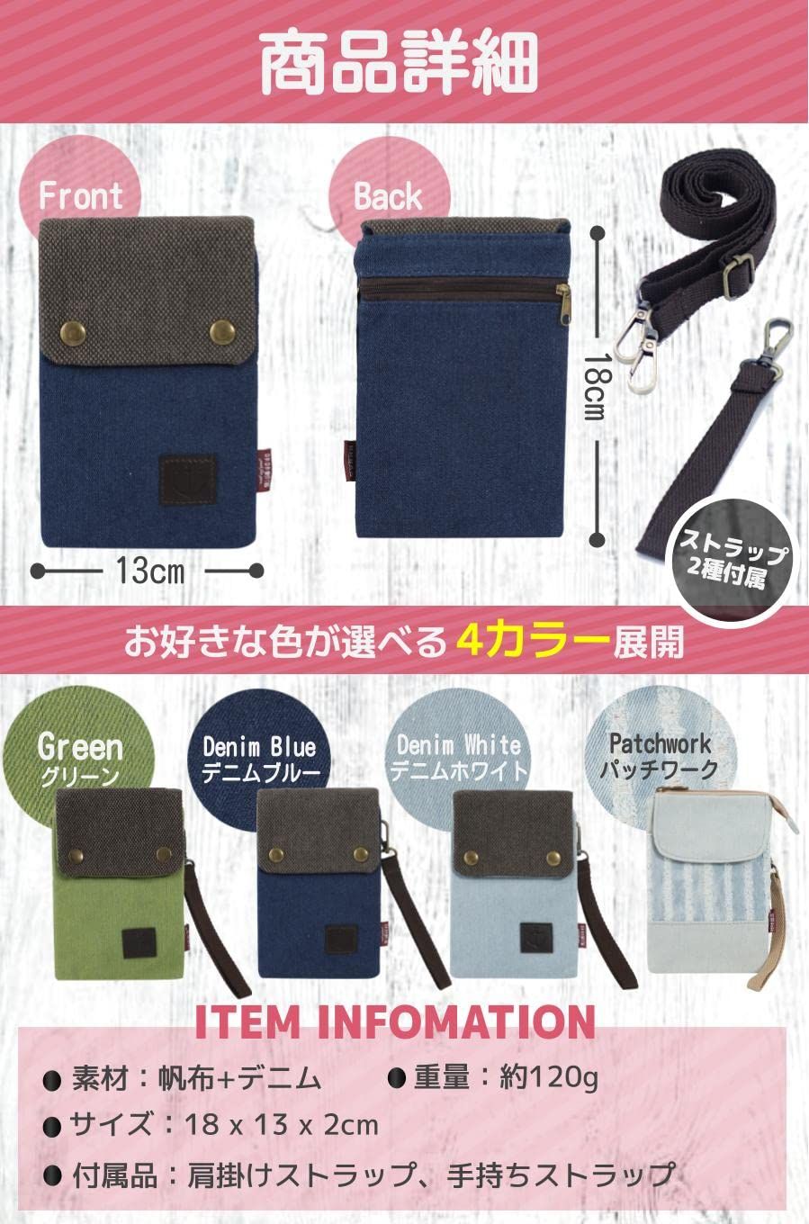 [fogman] スマホポーチ ショルダー 肩掛け 斜め掛け スマホ入れ 小物入れ おしゃれ 軽量 薄型 (デニムブルー)