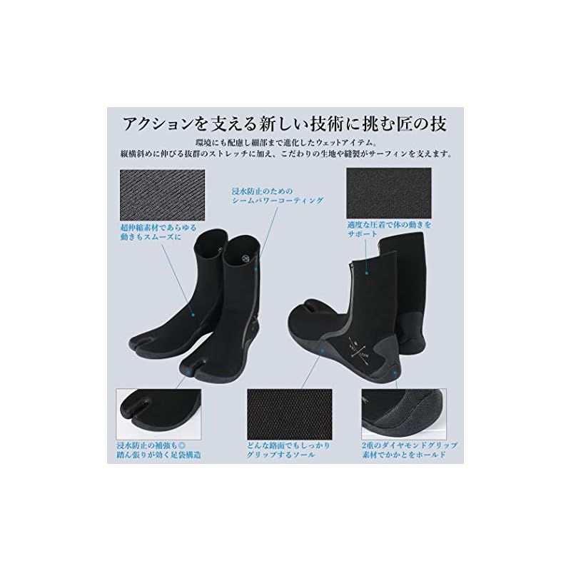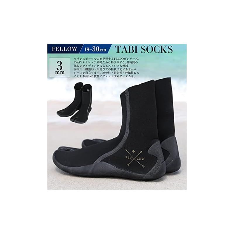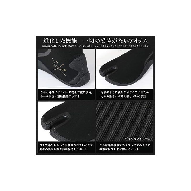 商品名:【新品】 FELLOW サーフブーツ ALL3mm 忍者足袋ソックス ニンジャ タビ 防水加工 サーフィン 日本規格 ウェットスーツ リーフブーツ メンズ レディース Black 26cm