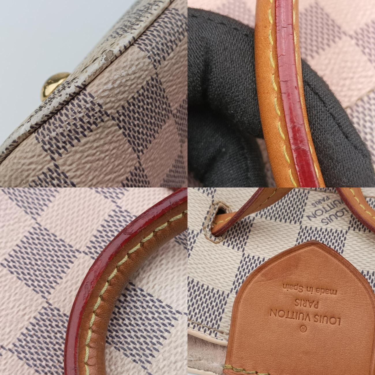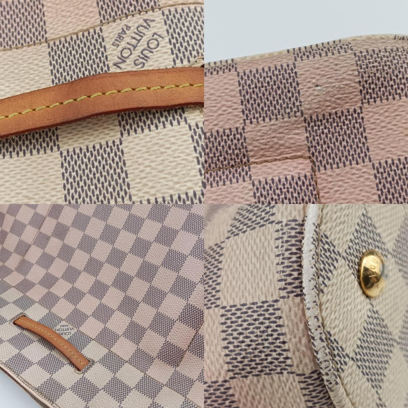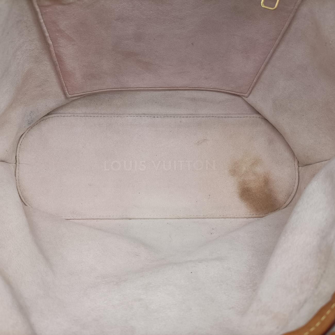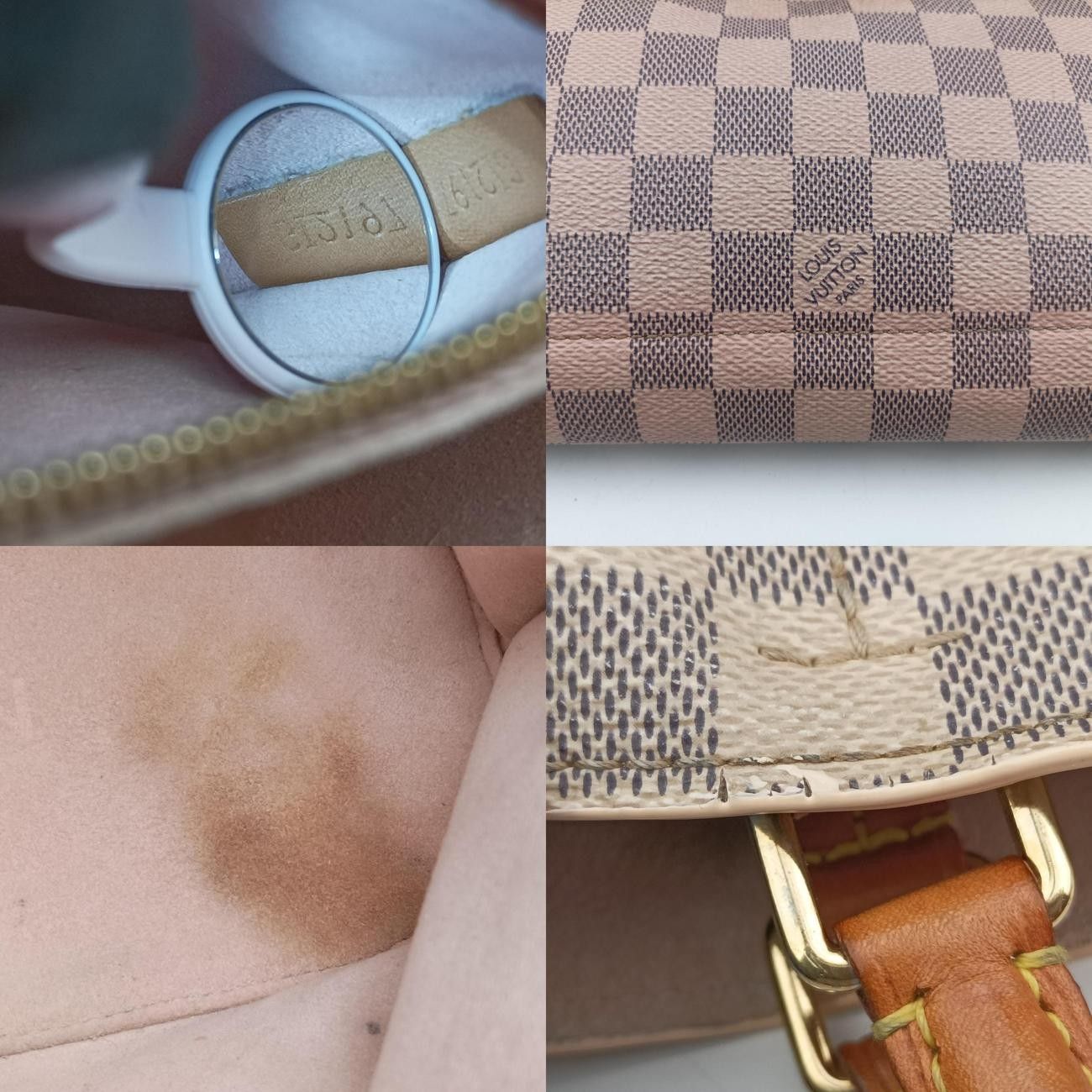 全体の中度使用跡、被覆中度染色内側の軽い汚れ、辺角の軽度摩耗、包口油辺の修復跡、金属の軽度摩耗、傷、植タンニン皮革の中度変色、汚れ、手提げ中等度摩耗、汚れ、肩ベルトの軽度使用跡;