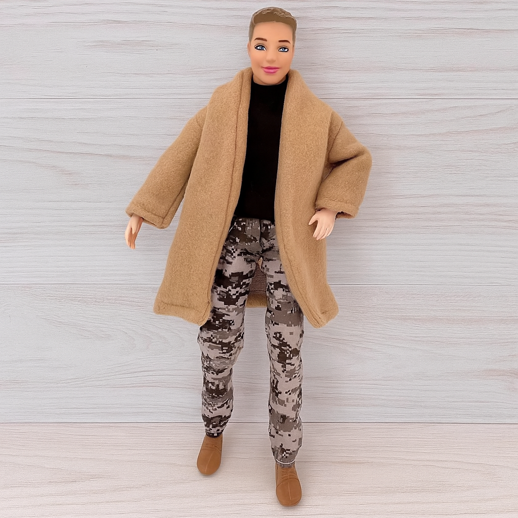 アクションフィギュア 衣装セット 1/6スケール コート 迷彩パンツ 外国人 茶髪 男性 30cm ヘッド ボディ PVC 汎用 素体 おもちゃ 交換 可動式 デッサンドール 撮影用 バービー人形サイズ t9516