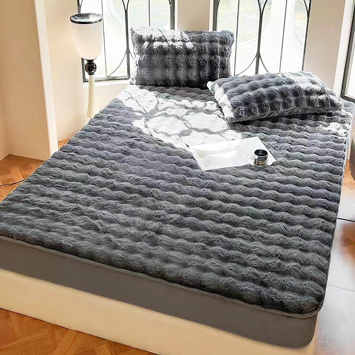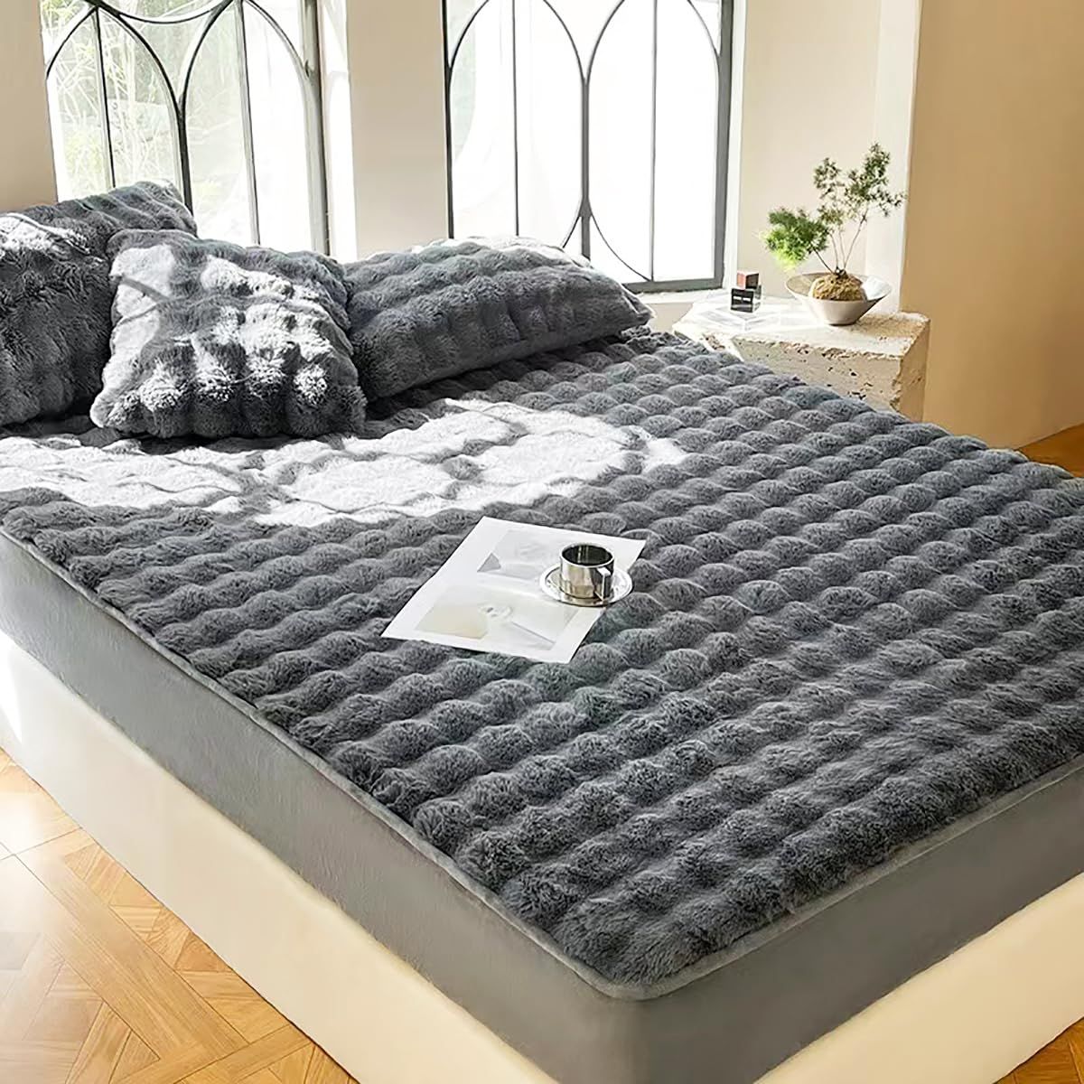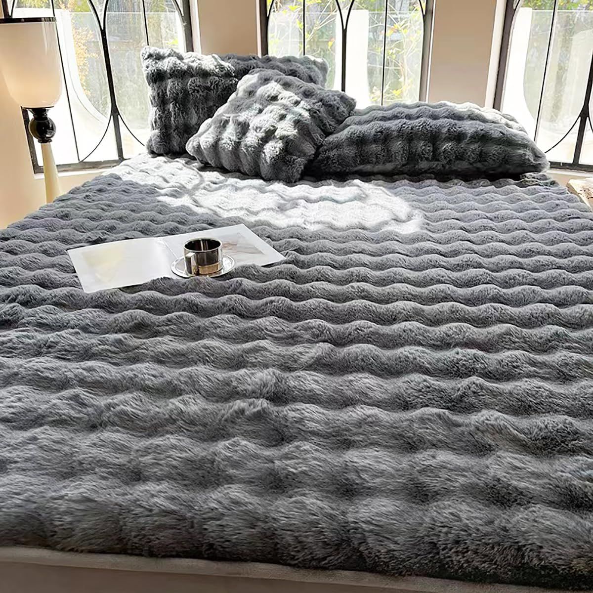 ボックスシーツ 冬 あったか 暖かい 柔らかい シーツ ベッドシーツ ふわふわ ラビットファー調 防寒 静電気防止 マイクロファイバー マットレスカバー ベッドカバー (グレー シングル・100×200cm)