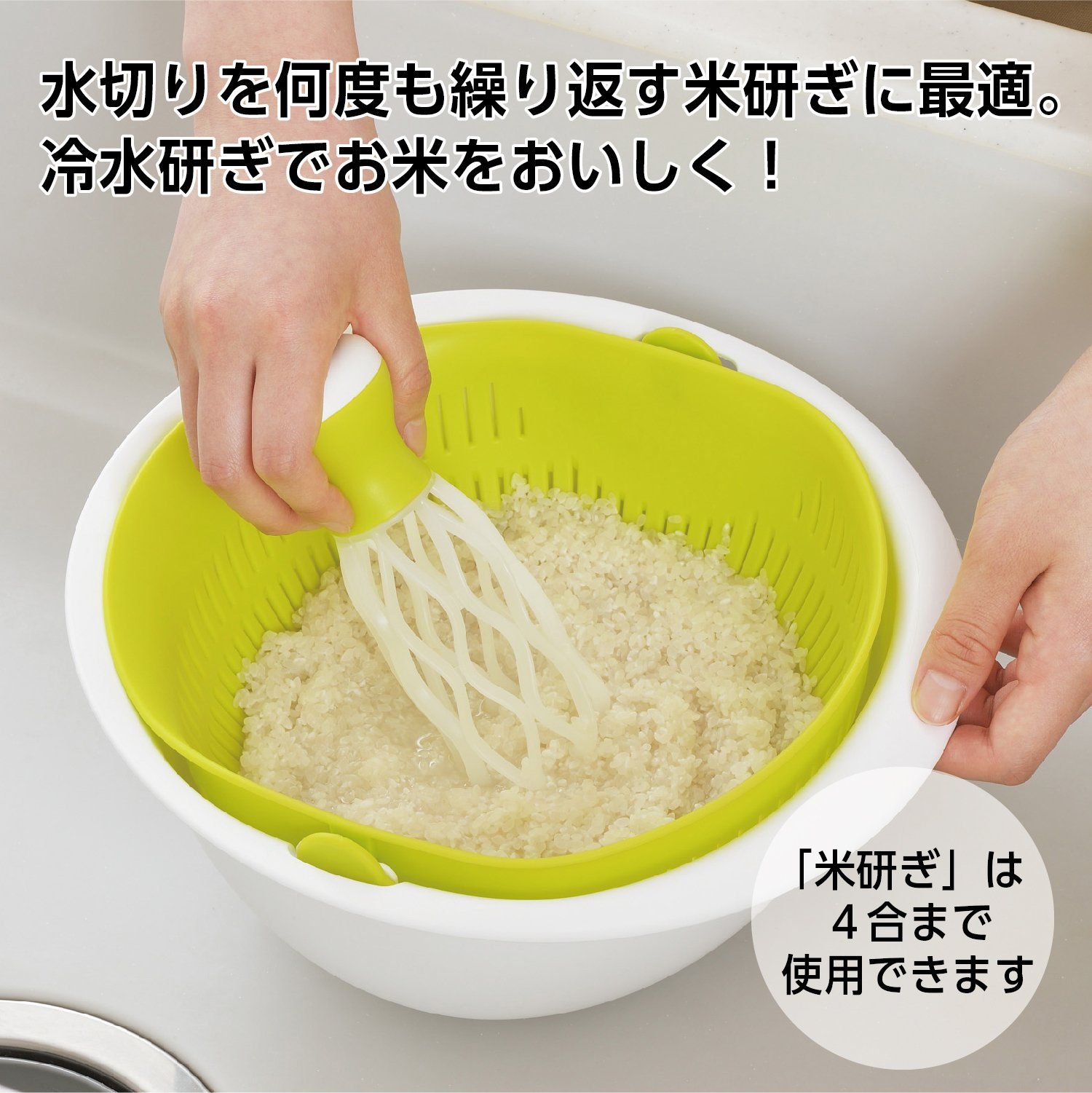 曙産業 ザル ボウル 日本製 ボウルを傾けてサッと水切り ザルを取り出す必要がないのでスピーディー 付属の米研ぎで手を濡らさずにお米が研げる ミラくるザル・ボウル 米とぎセット MZ-3514 グリーン 3.2l