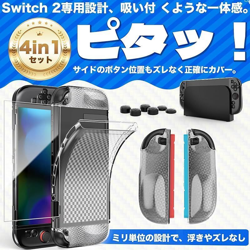 ?【一つで完璧!愛機を守り抜く360°フルガード】 大切な Switch 2 をあらゆる脅威から守る、究極のオールインワン Switch 2 カバーです。衝撃を吸収する「TPU 製ソフトケース」、画面を鉄壁ガードする「硬度 9H 強化ガラスフィルム」、そして繊細な操作をサポートする「親指キャップ 6 個」をセットで同梱。これ一つで、本体、ジョイコン、画面の全てをキズや汚れ、落下から守り抜きます。あなたの Switch 2 に、隙のない安心感を提供します。