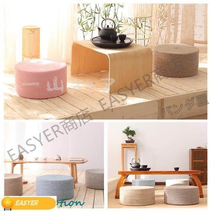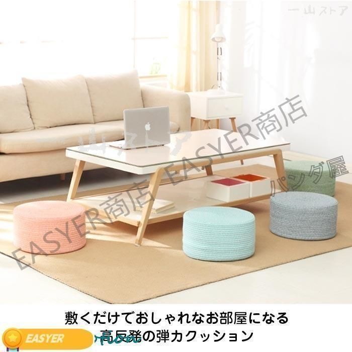 厚さ20cmと分厚いラウンドクッションは、ローテーブル用の座椅子のように使えます。