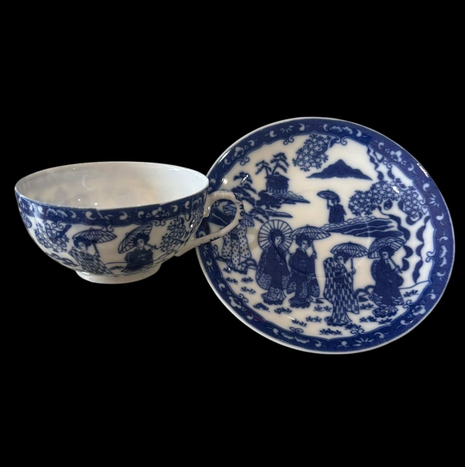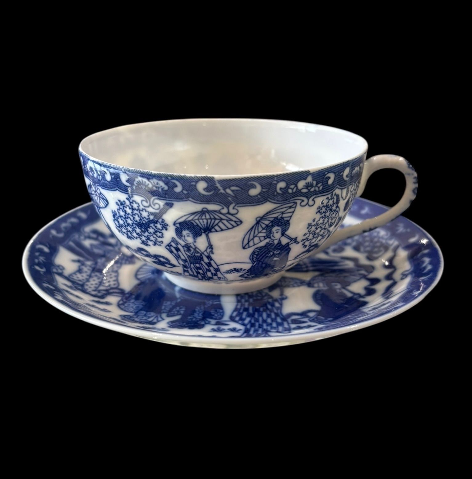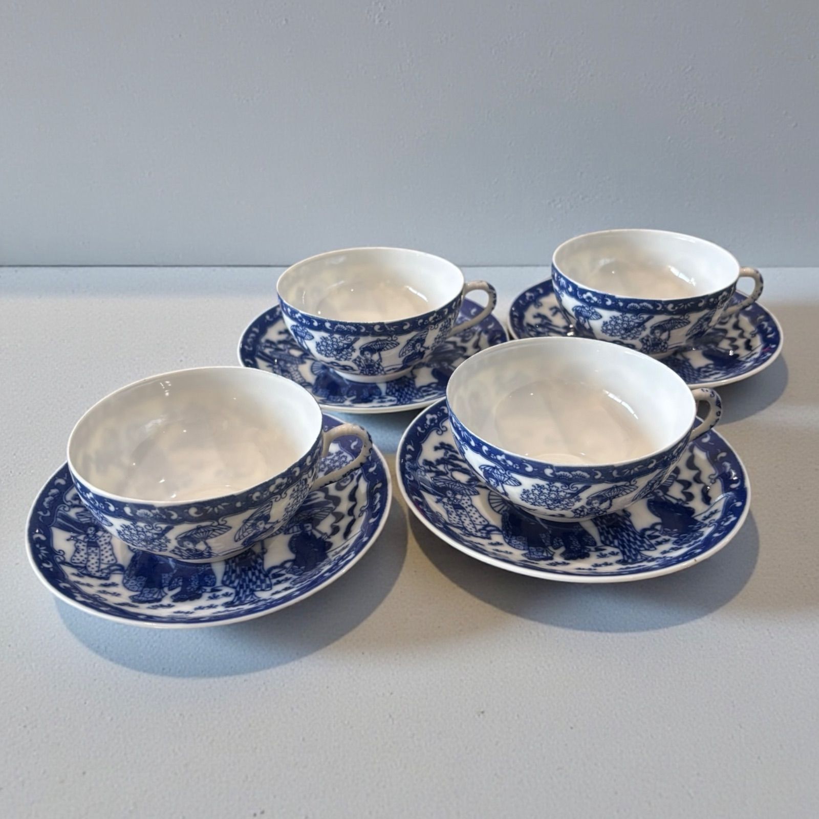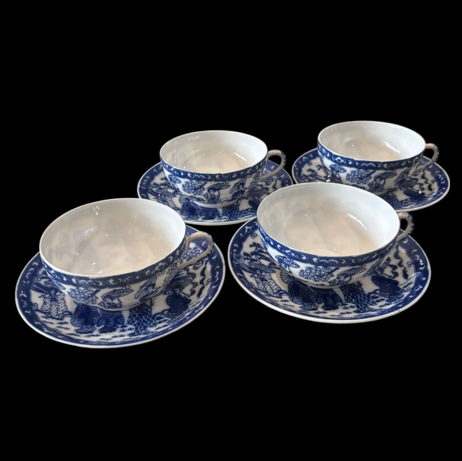 素敵な美人図のデザインが施されたエッグシェル カップ&ソーサー4客揃えです。
