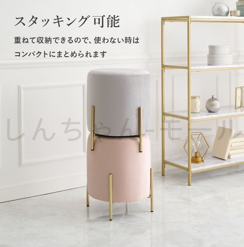 ベロア調×ゴールド脚 円柱型スツール スタッキング 椅子 イス チェアー 丸 円形 丸型 おしゃれ コンパクト ドレッサーチェア 韓国インテリ