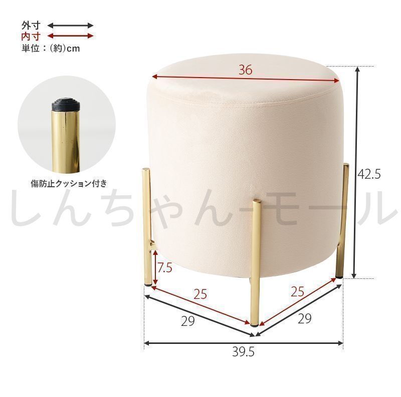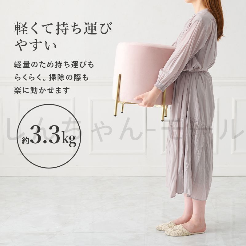 特徴 なめらかな触り心地のベロア風生地に、上品な艶のあるゴールド脚のスツール