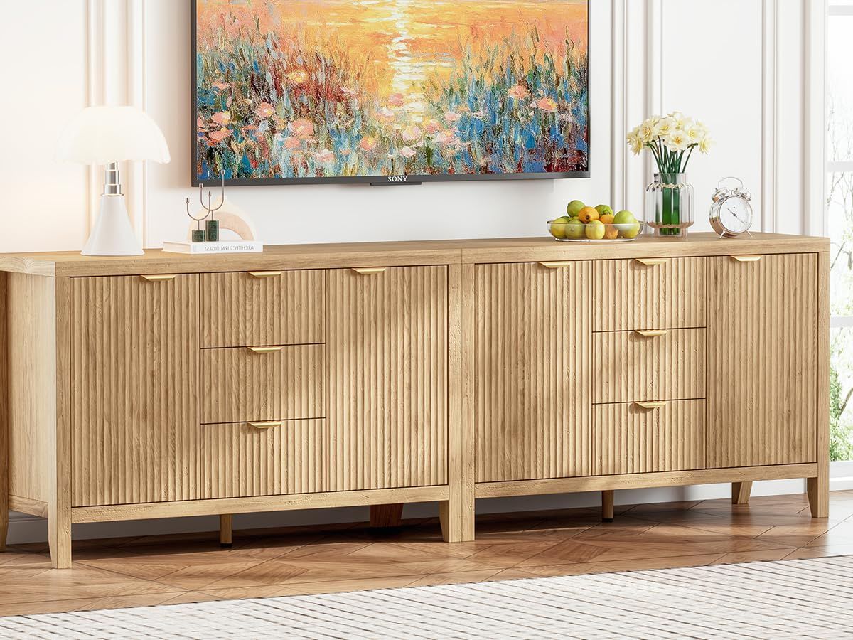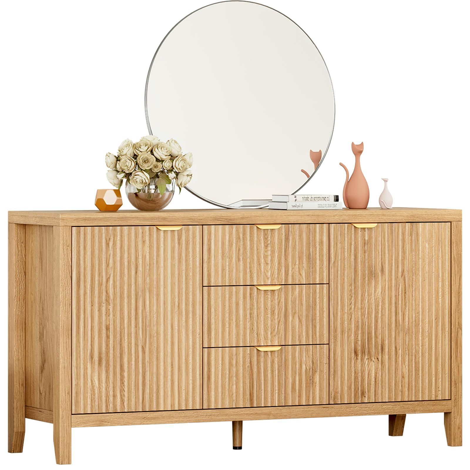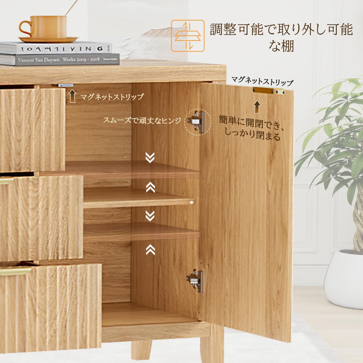 【溝付きデザイン&モダンな取っ手】前面パネルに施された溝付きデザインが立体感と高級感を演出し、どんなインテリアにも美しく調和します。メタル製の取っ手は握りやすく、扉の開閉もスムーズ。スタイリッシュでモダンな印象を与える収納キャビネットです。