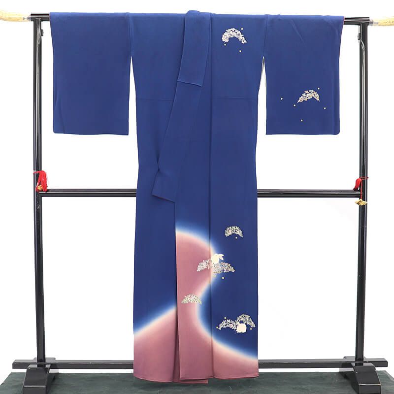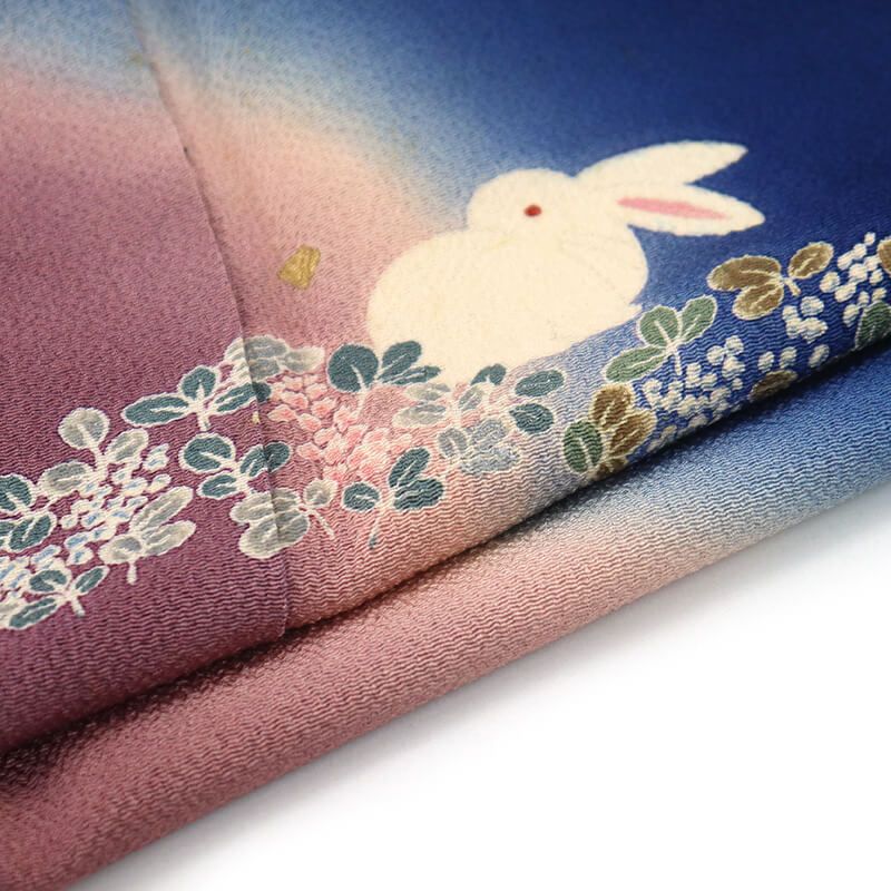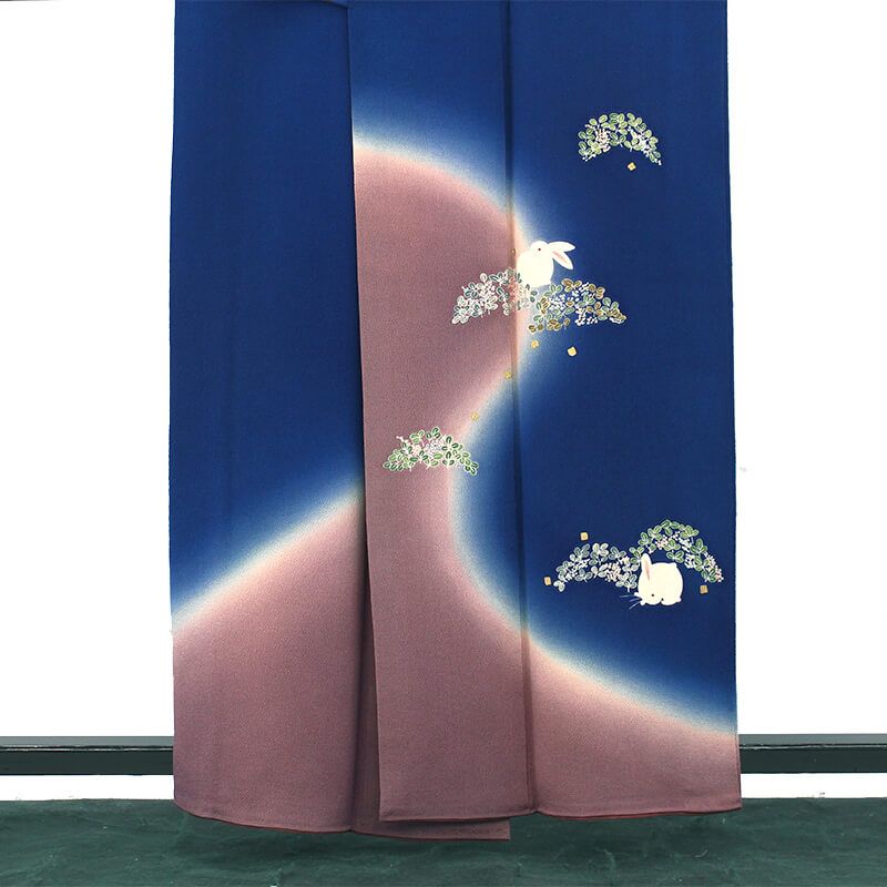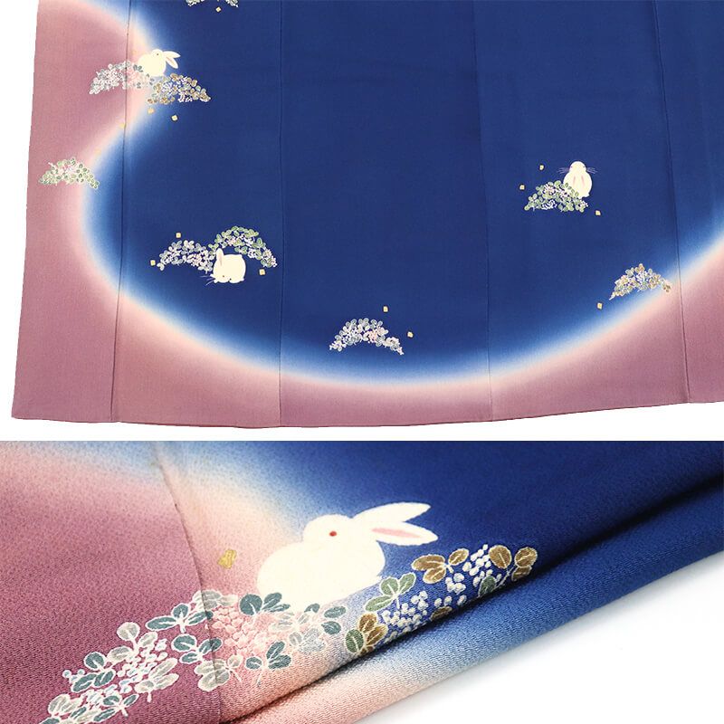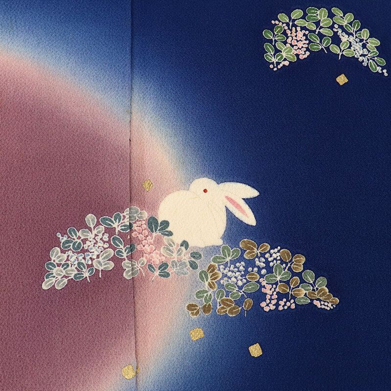 人形作家・人形師であるホリ・ヒロシ氏の落款が入ったお着物です。 萩の中で遊ぶかわいいウサギが表現されたお着物で、 愛らしいデザインが魅力です。 裾は、灰紫色のぼかしで、上品ですね。華やぎ感のある紺色と愛らしいウサギの柄が、 魅力的なおきものです! 入荷が少ないホリヒロシ氏のお着物。 お探しの方はお早めに!