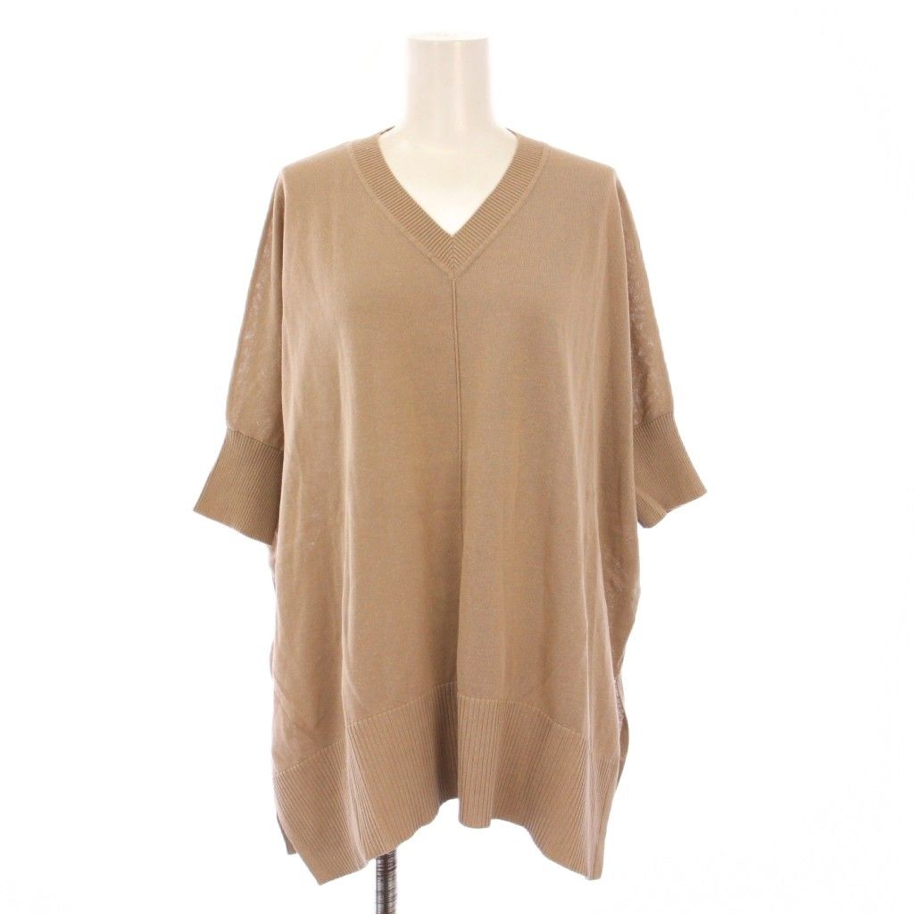 【商品名】セオリーリュクス theory luxe ニット 半袖 Vネック ストレッチ 無地 麻 リネン混 薄手 38 ベージュ /BB