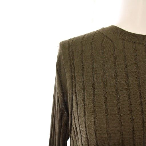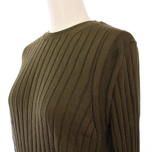 【商品名】スローン SLOANE 18Gシルクワイドリブ長袖クルーネック ニット ストレッチ 薄手 ワンカラー 2 カーキ /BB