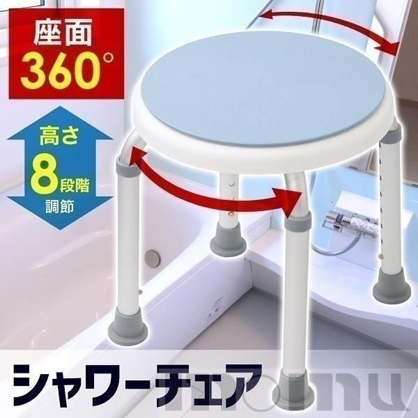 膝や腰への負担を軽減してくれる入浴時に使える回転式のシャワーチェアです。