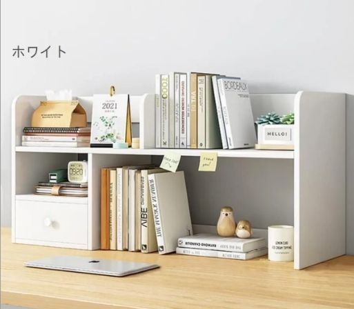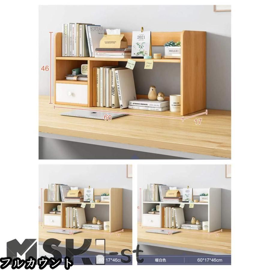 新品未使用卓上収納ラック 本棚 デスク上収納ラック デスク上置棚 木製 大容量 引き出し 組み立て簡単 卓上整理棚 多機能 文具用品収納 小