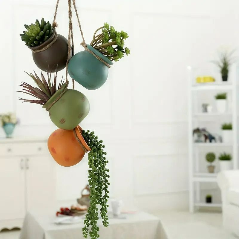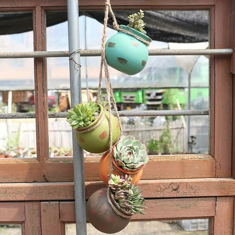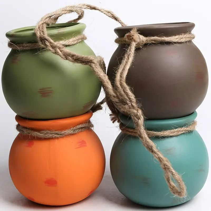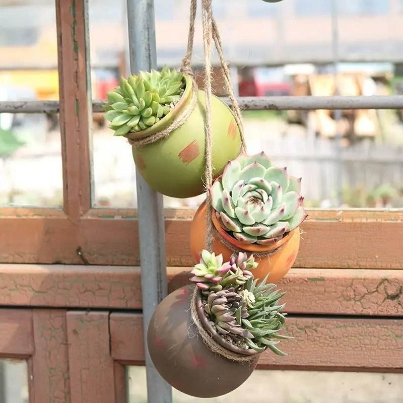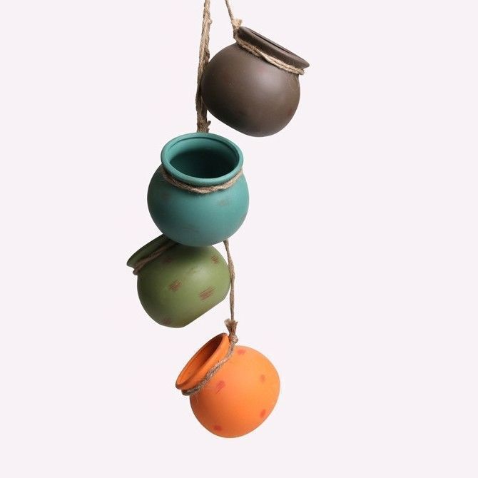 プランター ハンキング ヴィンテージ調 4個 カラフル セラミック 吊るすタイプ フラワーポット 植木鉢 かわいい ガーデニング 雑貨 ガーデン雑貨 ガーデンインテリア ガーデン インテリア 庭の装飾 お洒落 おしゃれ