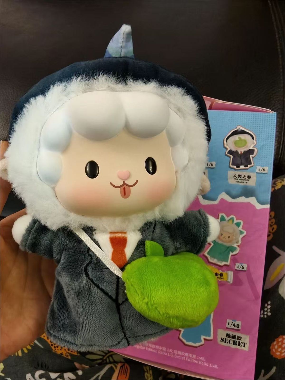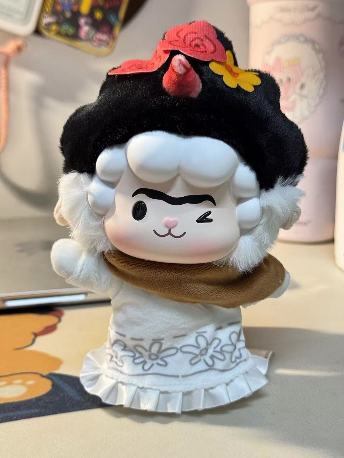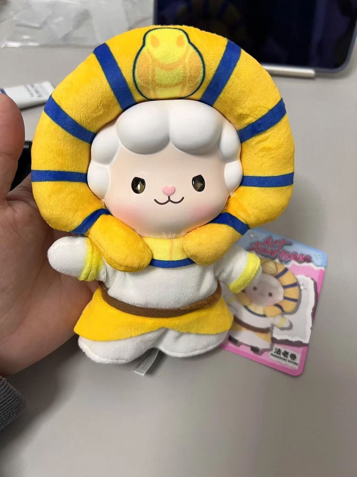 このシリーズでは、巻き毛の羊をモチーフにしたキャラクター「ギュンギュンラム」が、様々な芸術作品や文化的な衣装をイメージしたコスチュームを着ています。例えば、画像にはエジプトのファラオ風の衣装や、画家のベレー帽をかぶったものなどが見られます。