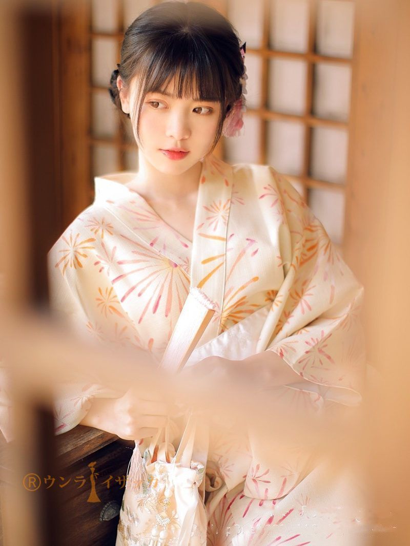 【セット内容】 浴衣+簡易帯(白)+髪飾り(ランダム発送)