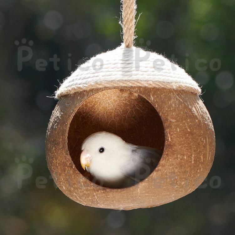 鳥の巣 ココナッツ殻製 天然素材 鳥 小動物 ハウス 隠れ家 文鳥 セキセイインコ オカメインコ 小鳥のプレゼント ヤシの実 インコ ハムスタ