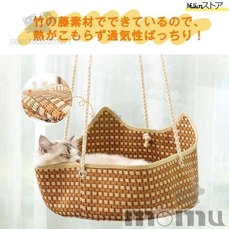 本製品は洗えるので洗濯に便利です。耐久性が優れてるので、ベッドとして使えるだけでなく、小型ペットの遊び場としてもお薦めます。本製品の四角にレジンバックル付いて長さ調節可能だし、4つのラックが付きで取り付け簡単です。また、猫ちゃんは日向ぼっこしながら居眠りをすることも楽しいです。