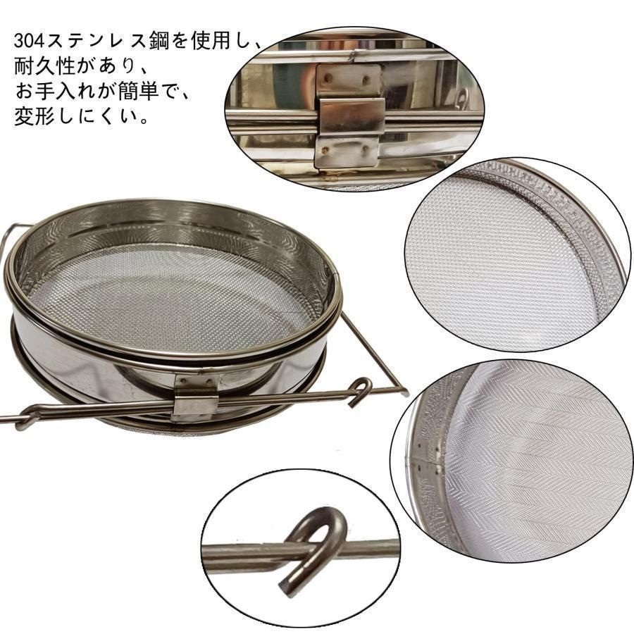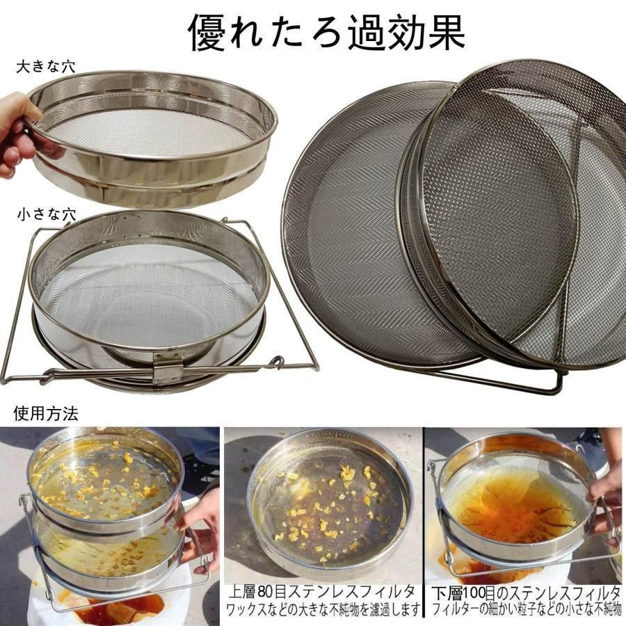 優れたろ過効果:はちみつ こし器には2つの独立したステンレス鋼メッシュがあり、細かく均一なメッシュは、細かい不純物をろ過して取り除くことができます。 分解して蜂蜜中の花粉、ワックス、不純物を効果的にろ過するために使用することもできます。