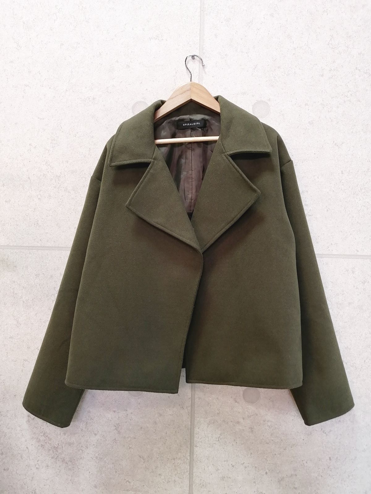 【商品名】ショートコート ジャケット 長袖 ボタンレス 無地