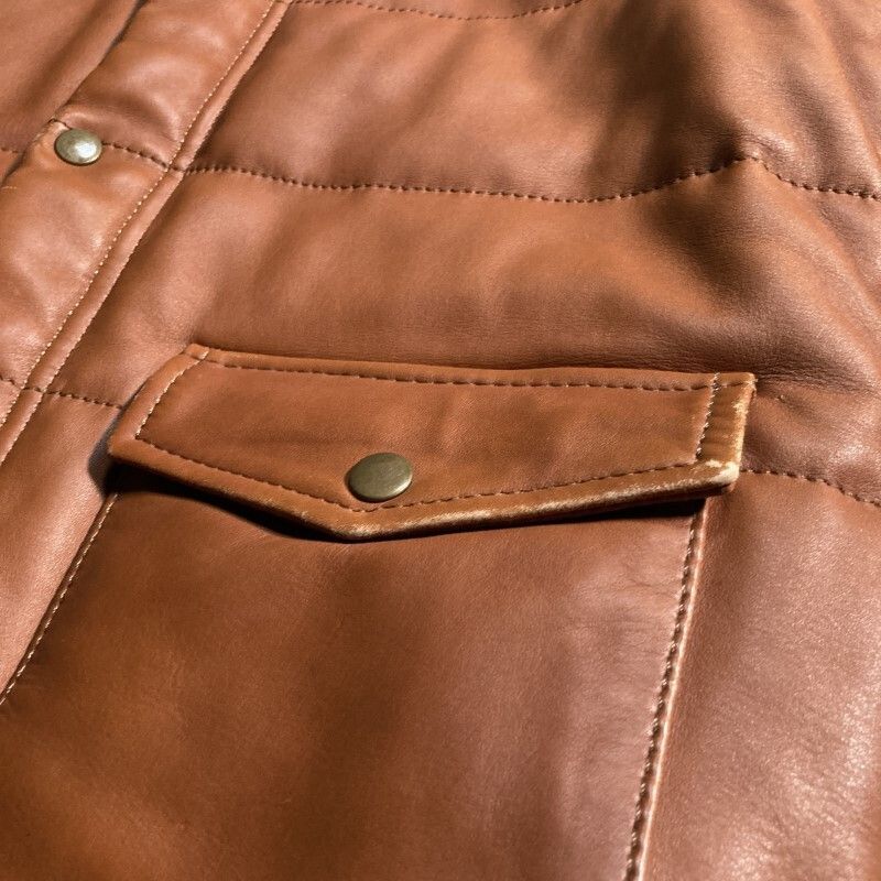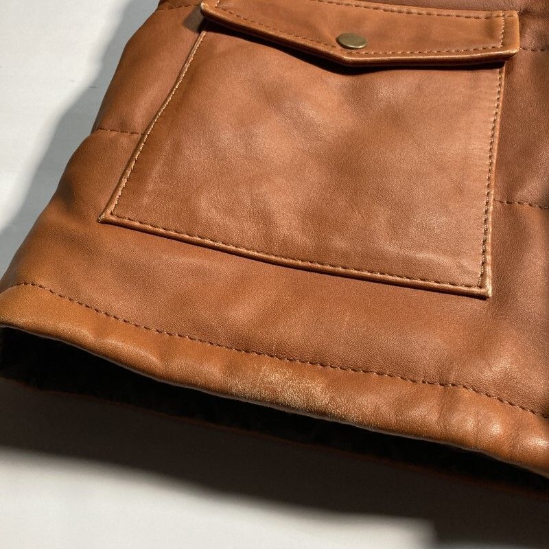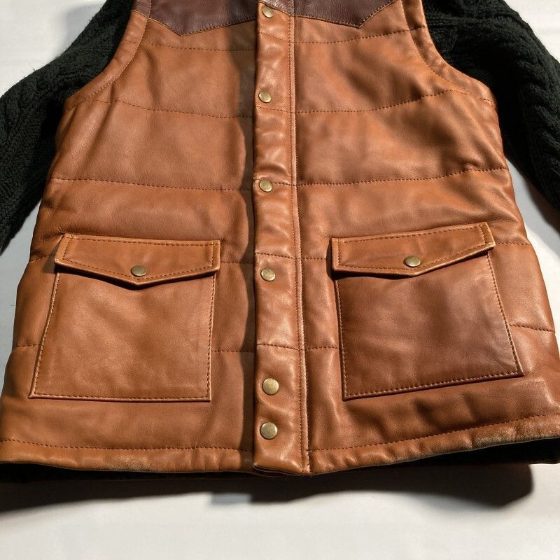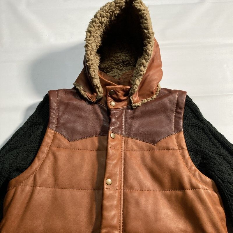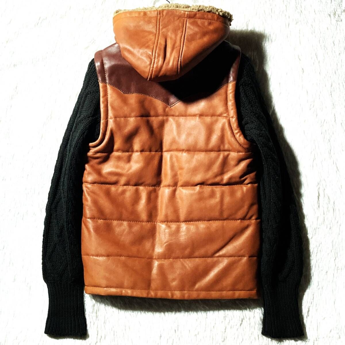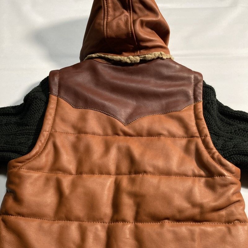 glamb★名作アーカイブ★Obama down jkt★牛革レザー 着脱フード&ケーブル袖ニット 中綿ジャケット ベスト 茶 緑 3 グラム 定価64350円 Y2K