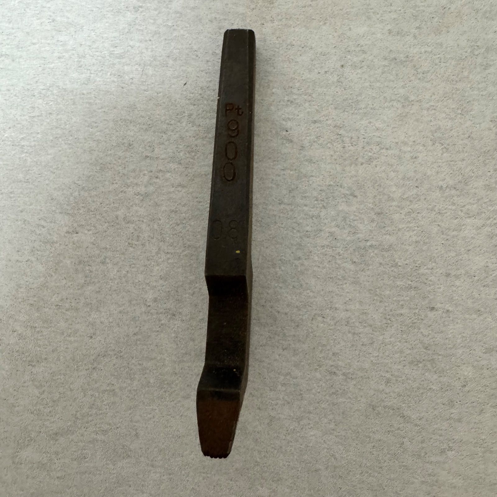 * **用途:** プラチナ製品に素材を示す「Pt900」マークを打刻するための専門工具です。特に**指輪の内側などの曲面**に打刻する**曲刻印**です。