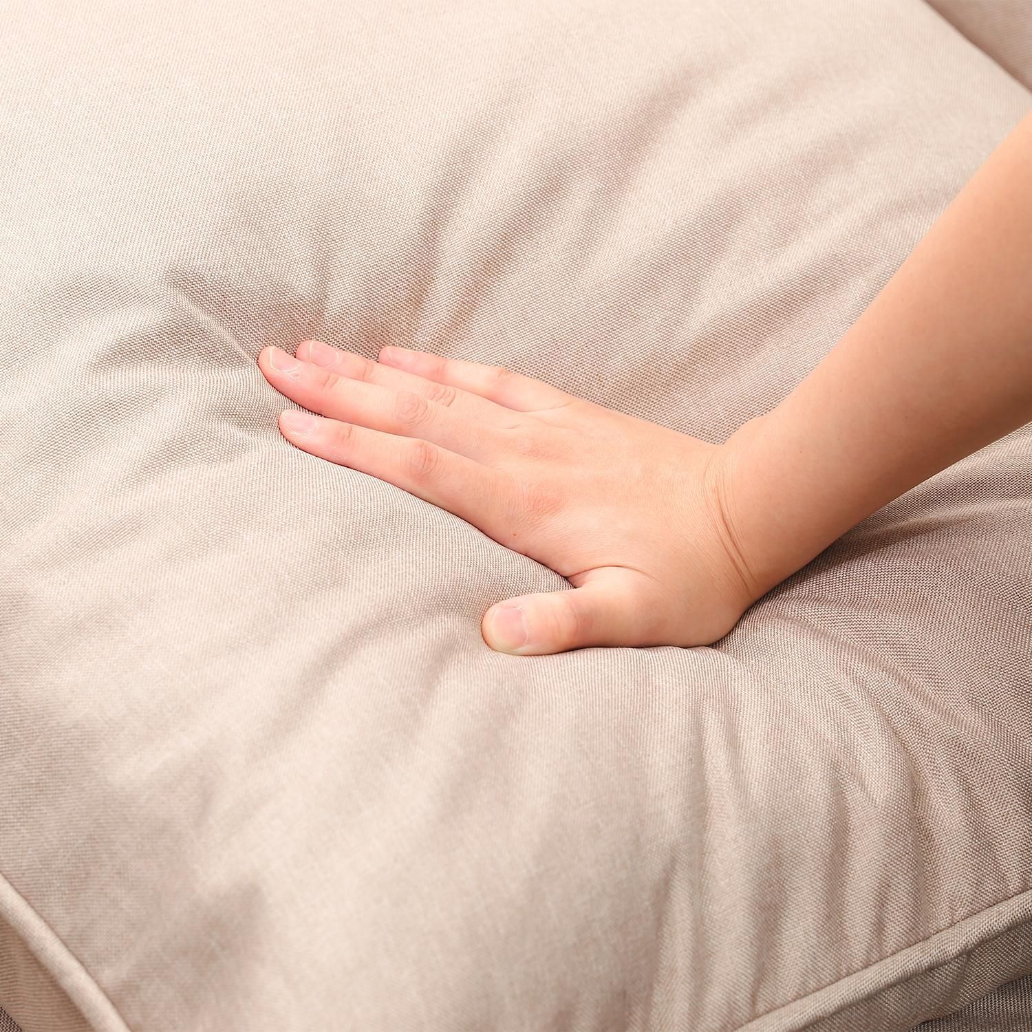 男性でもゆったりと寄りかかれます。ダブルクッションで座面はふかふか。ゆったりリラックスできます。座面下とダブルクッションの高さがあるので、立ち上がりやすいこともポイントです。