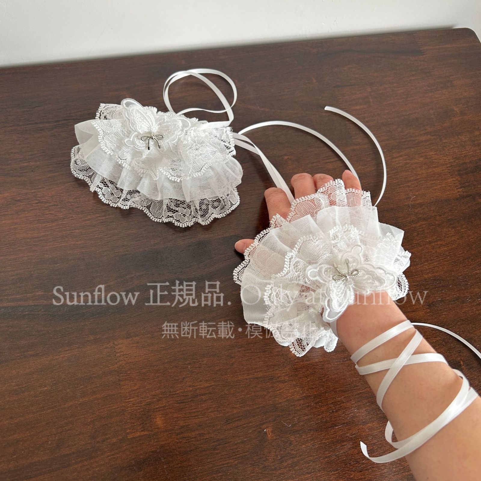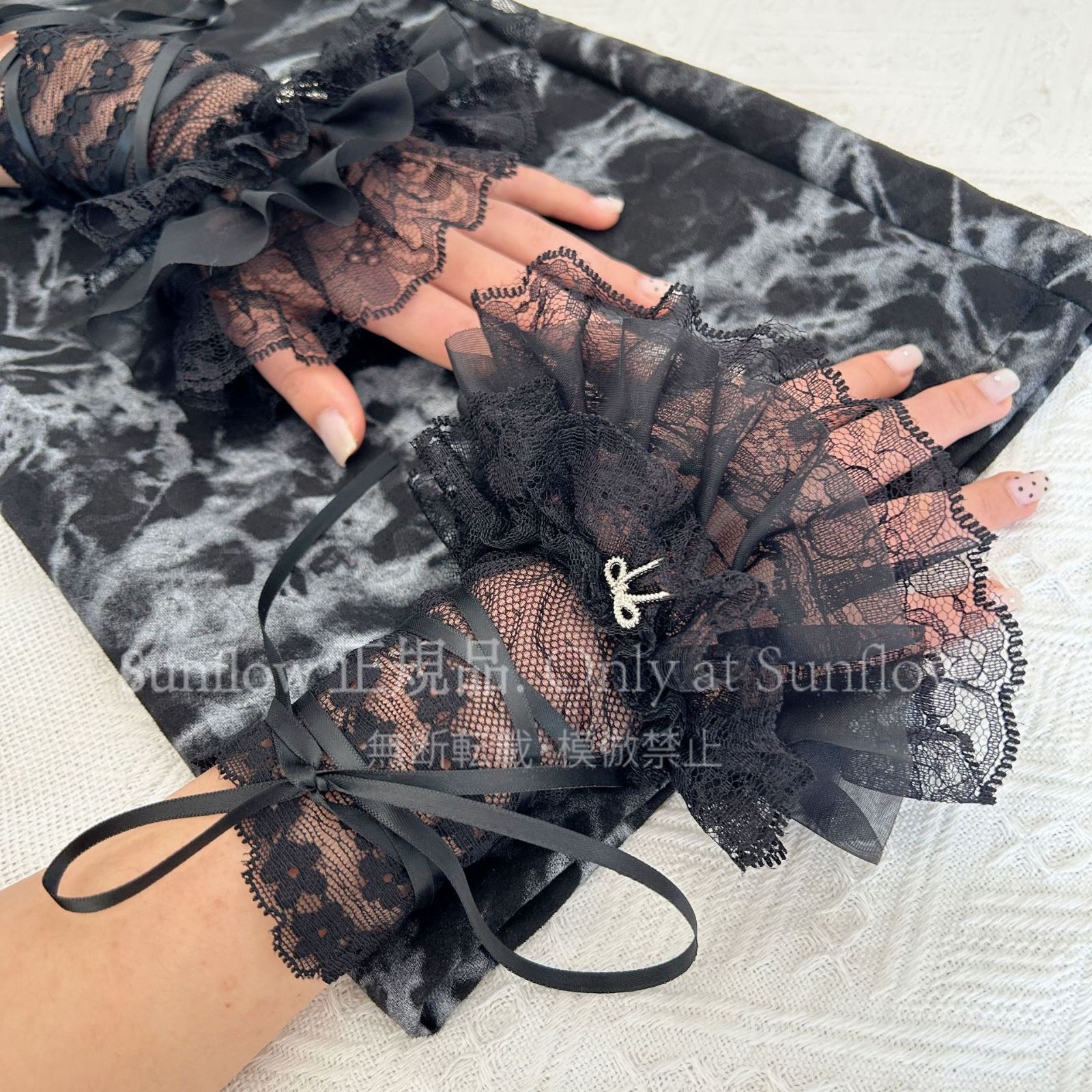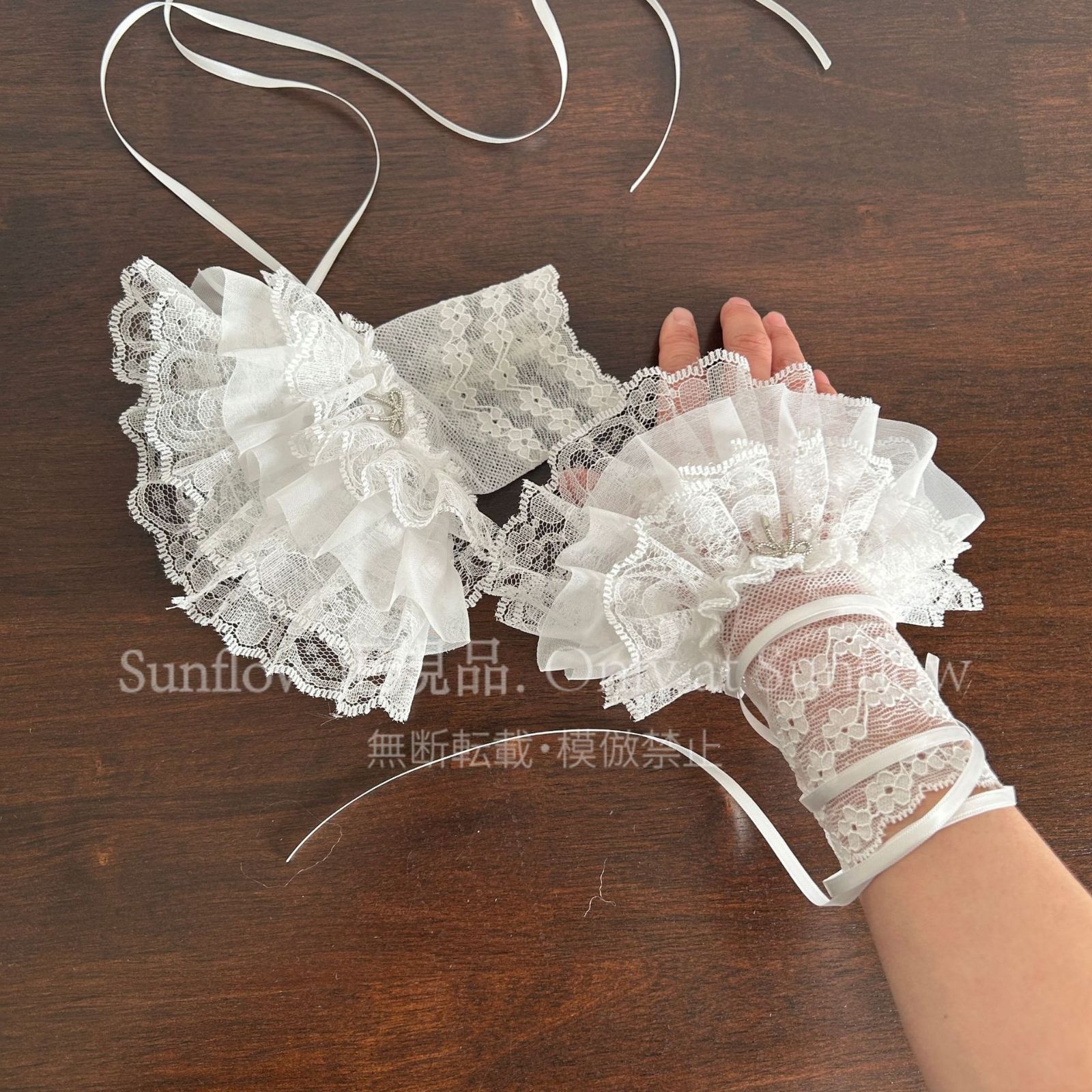繊細なレースとリボンを組み合わせた華やかなアームカフス/グローブ