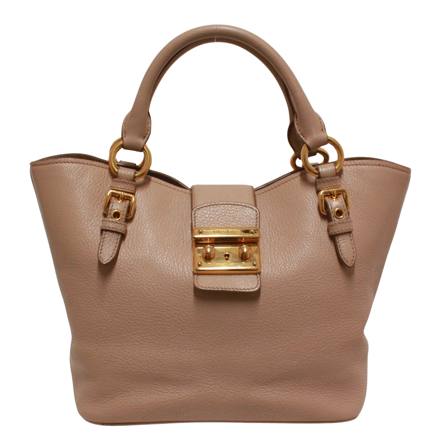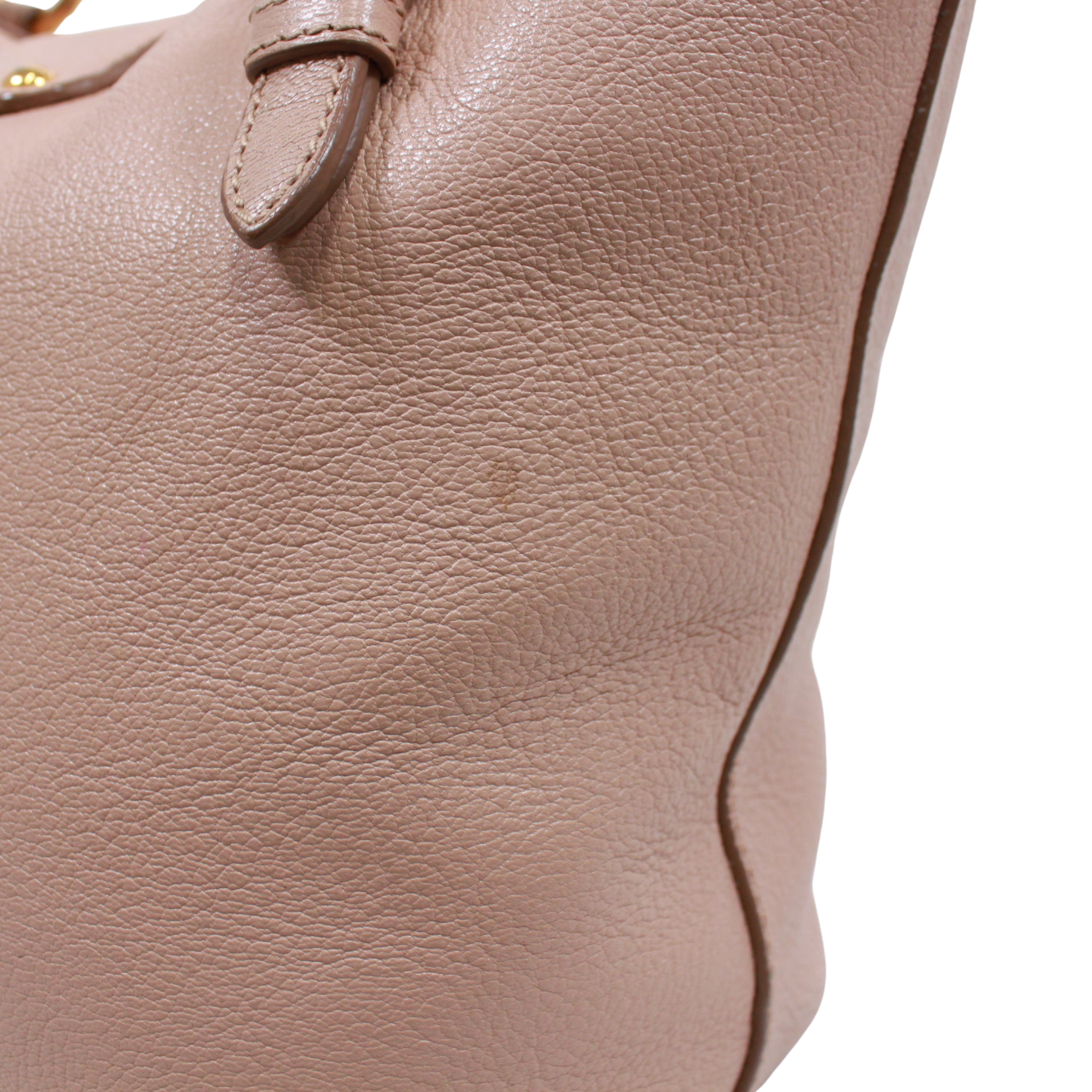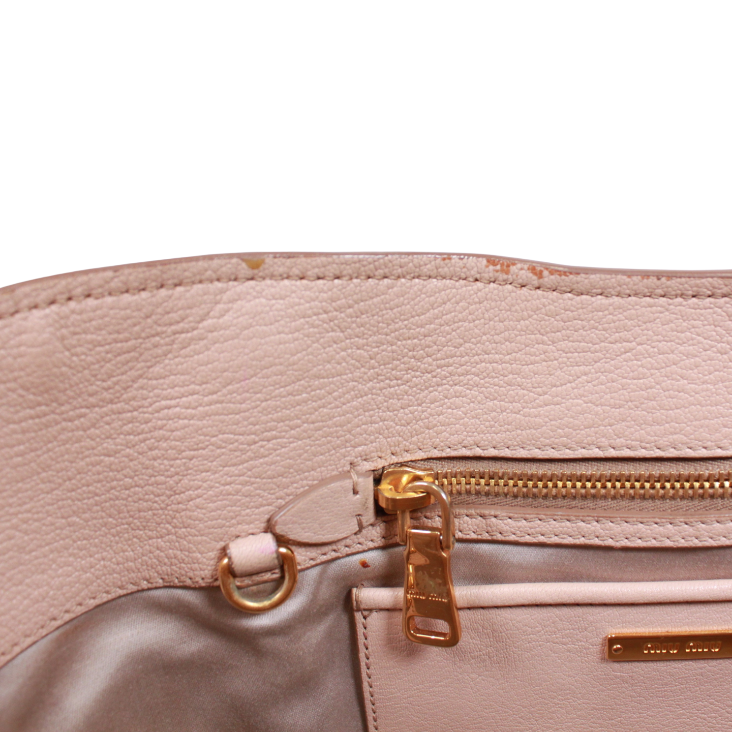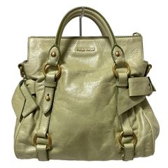 【商品名】miu miu レザー ピンクベージュ ハンドバッグ ゴールド