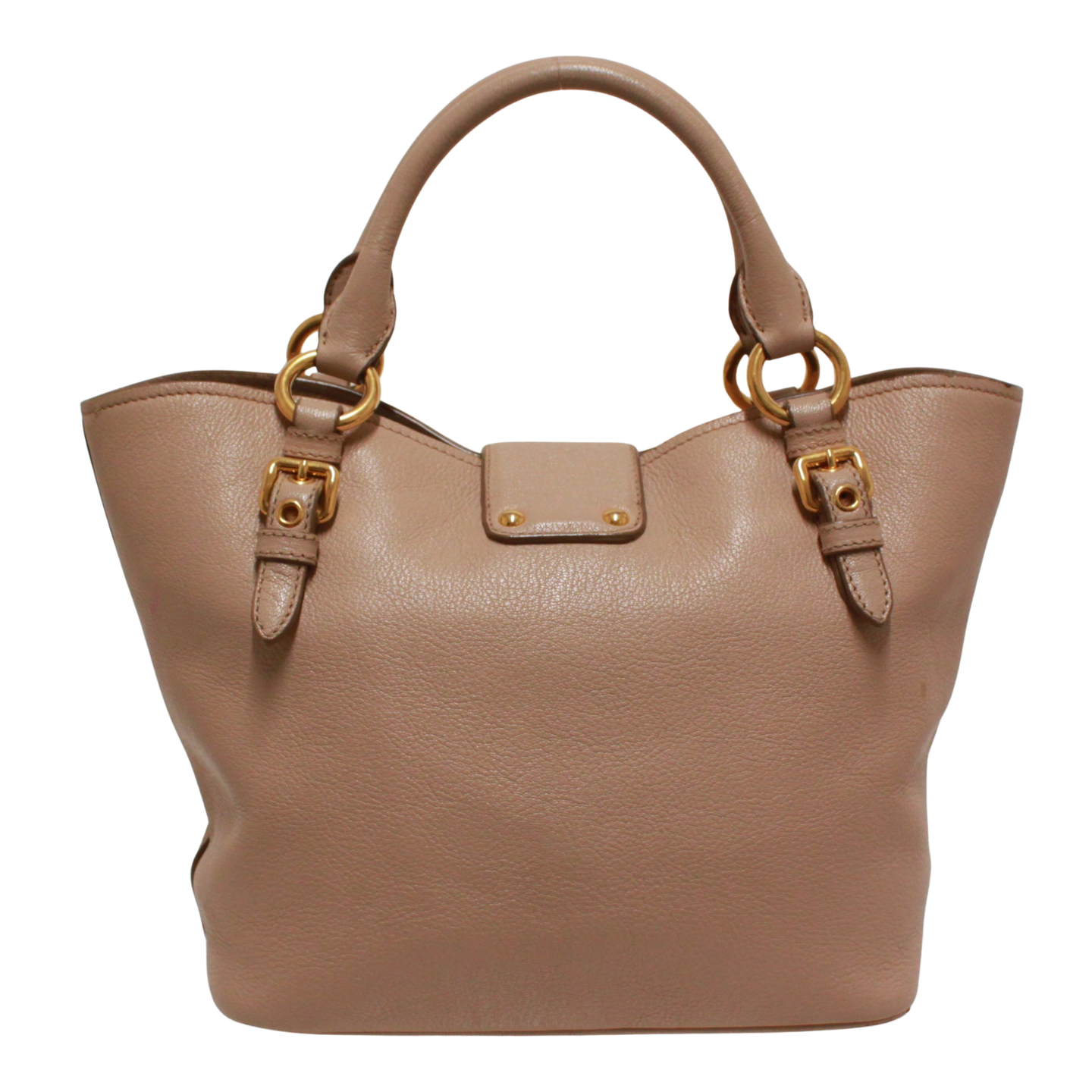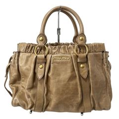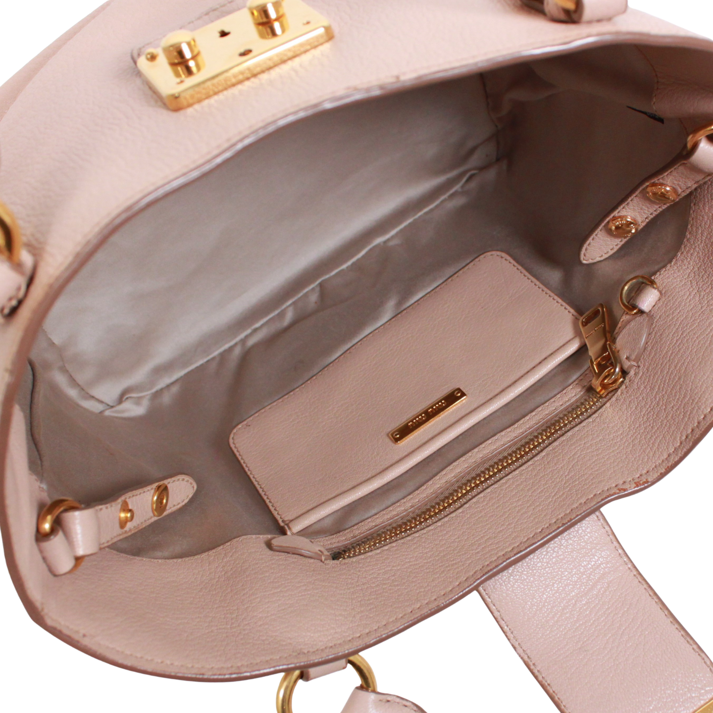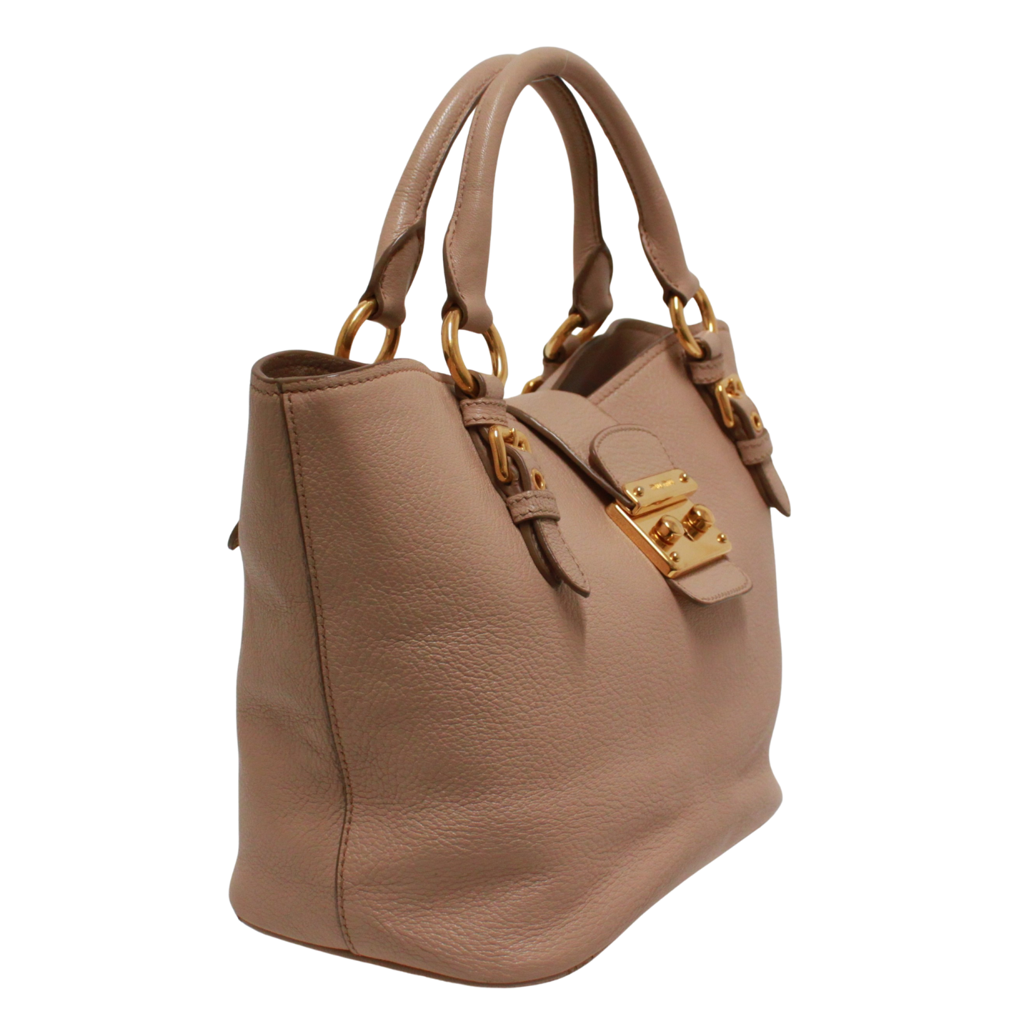 【商品名】miu miu レザー ピンクベージュ ハンドバッグ ゴールド
