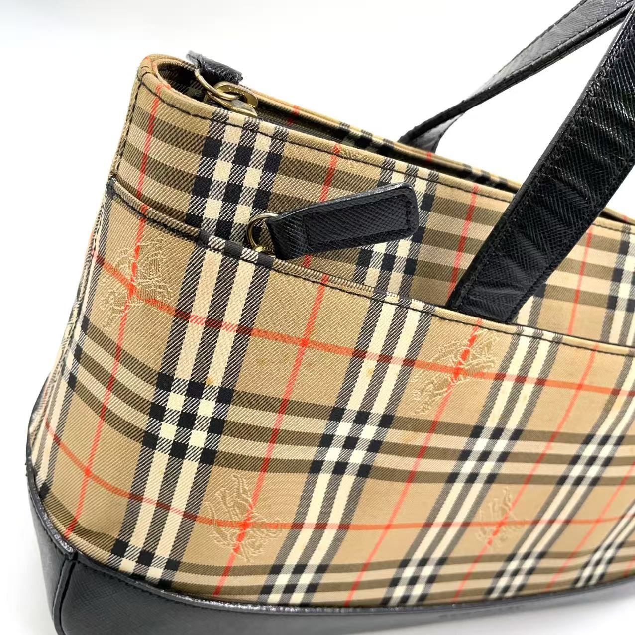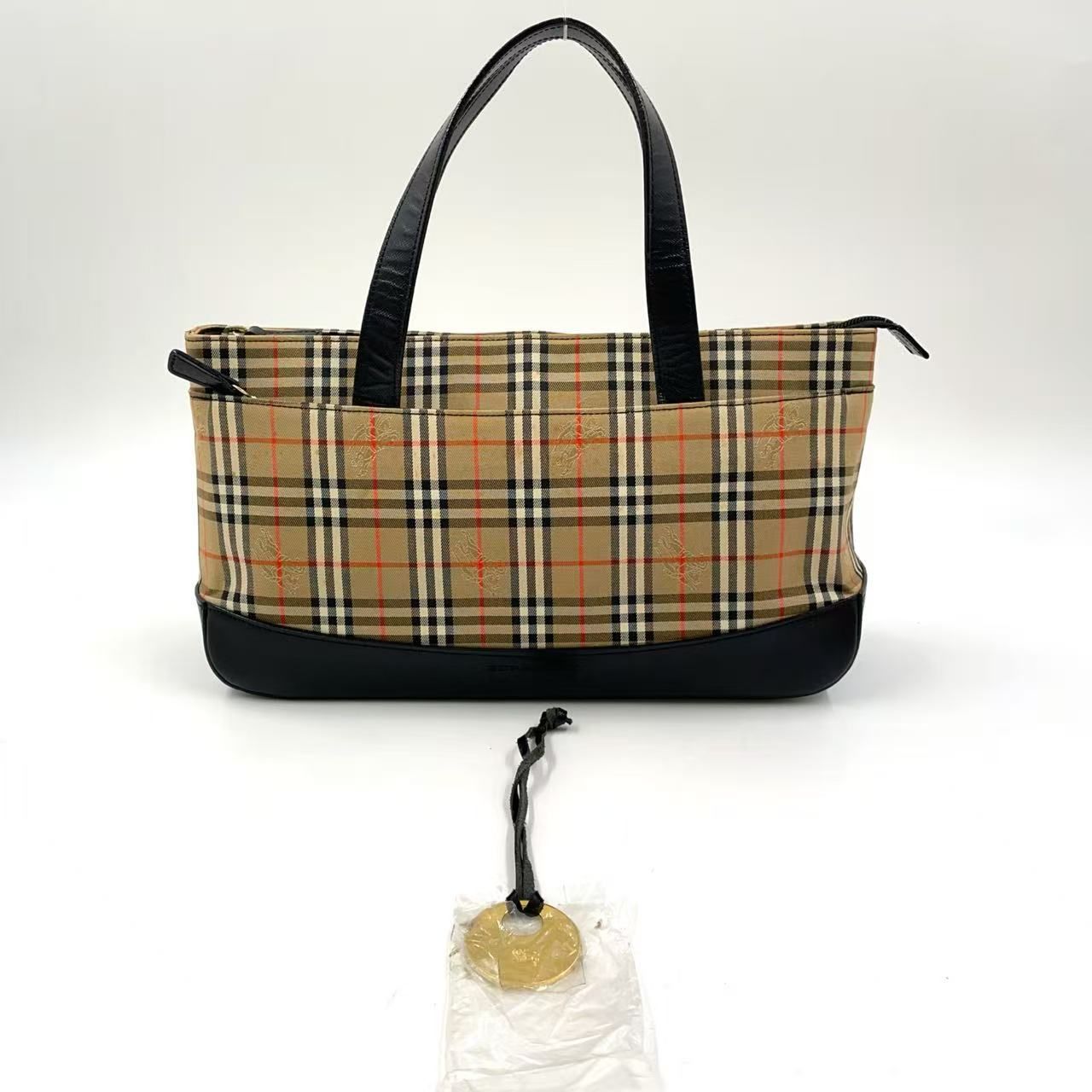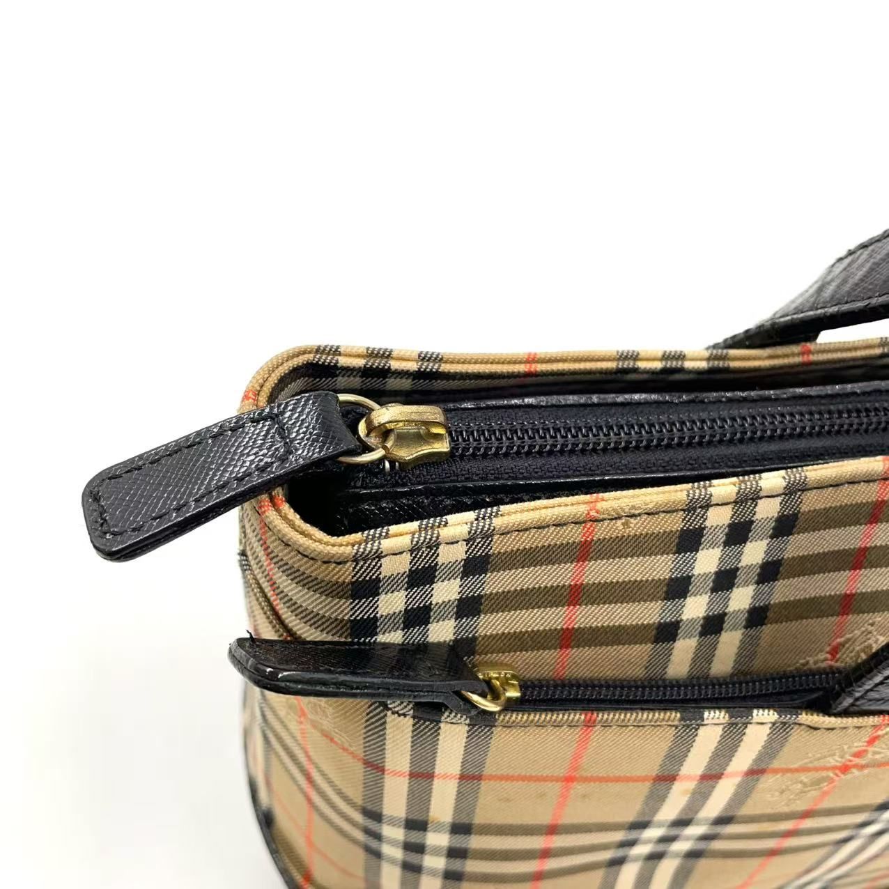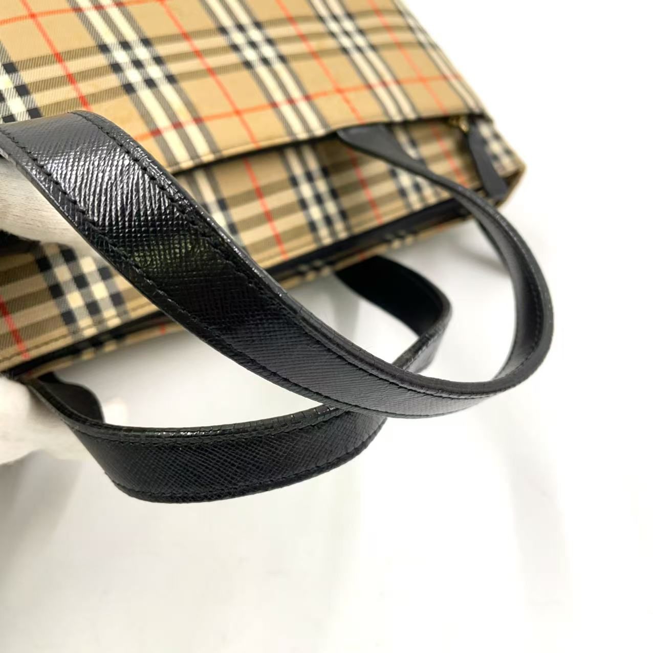 【商品名】BURBERRY ノバチェック レザー×キャンバス ブラウン×ライトブラウン ミニトートバッグ ゴールド