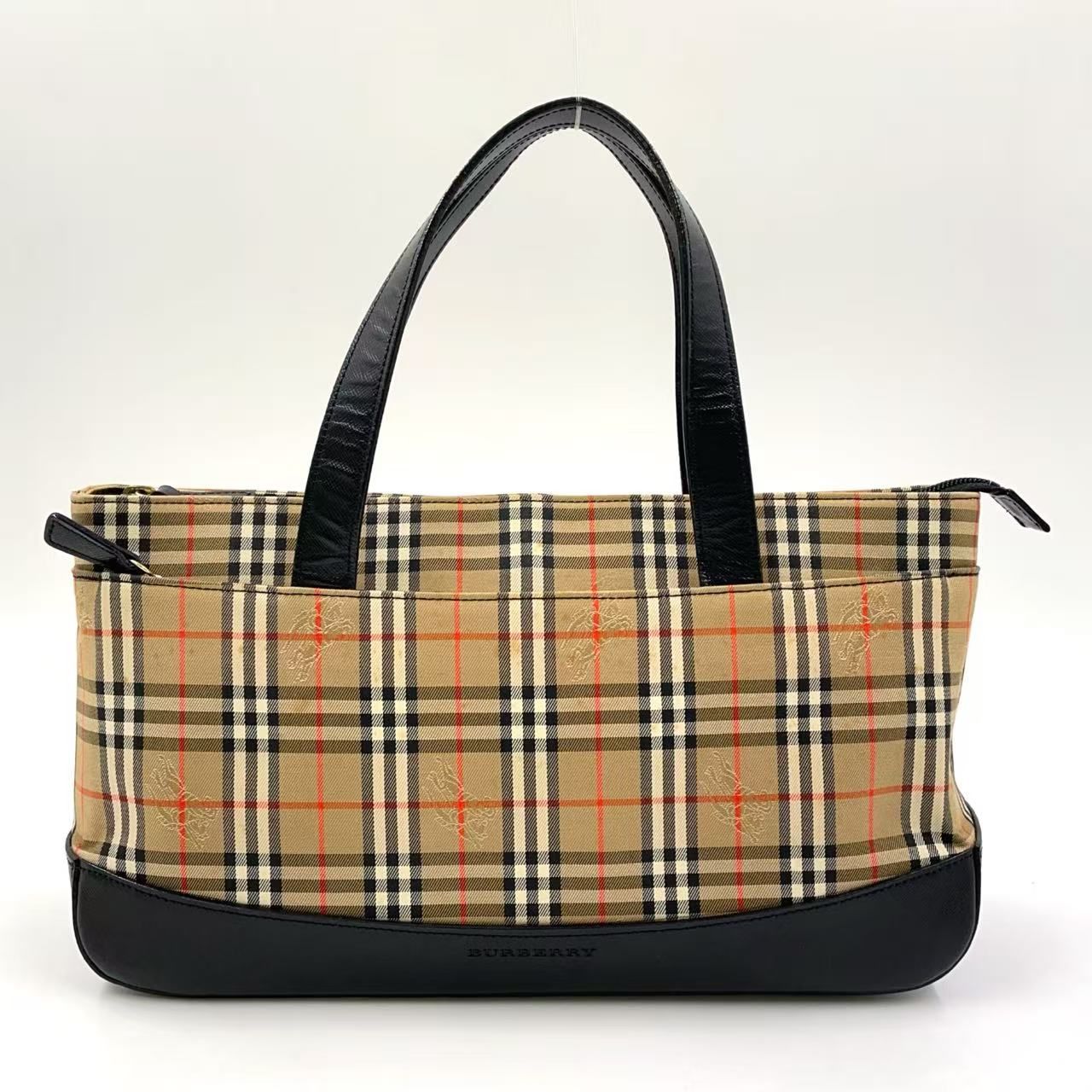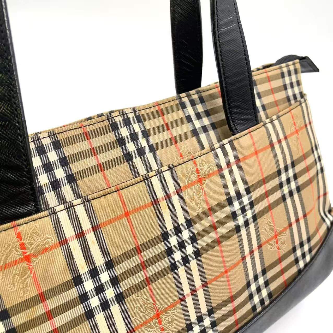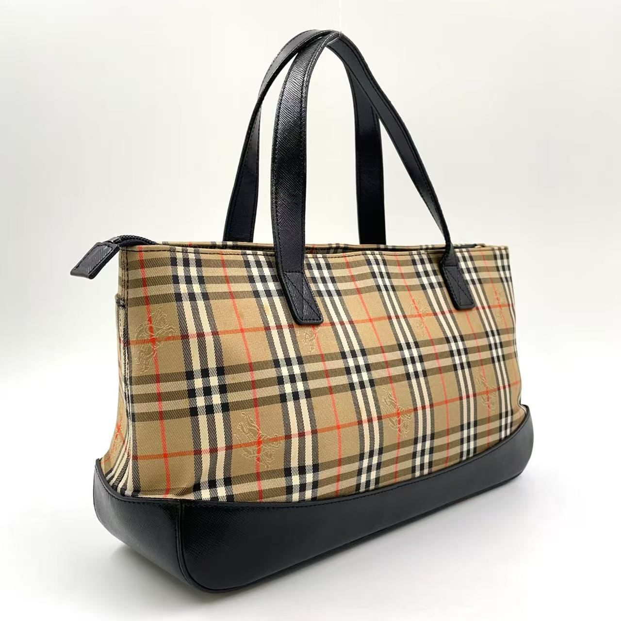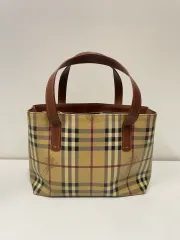 【商品名】BURBERRY ノバチェック レザー×キャンバス ブラウン×ライトブラウン ミニトートバッグ ゴールド