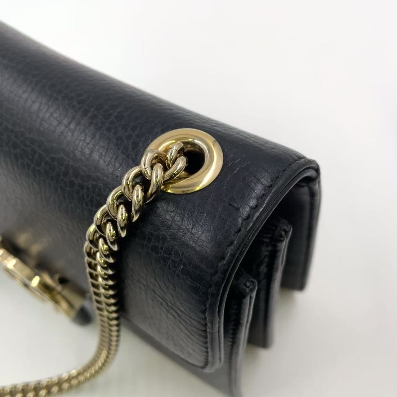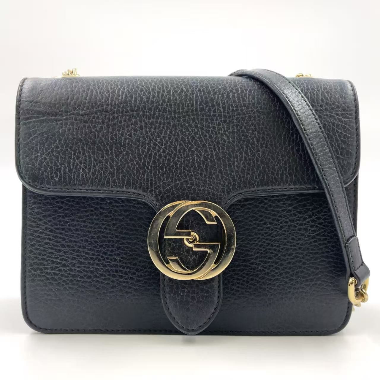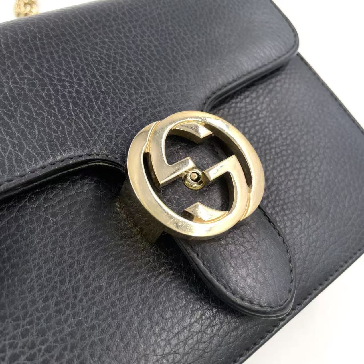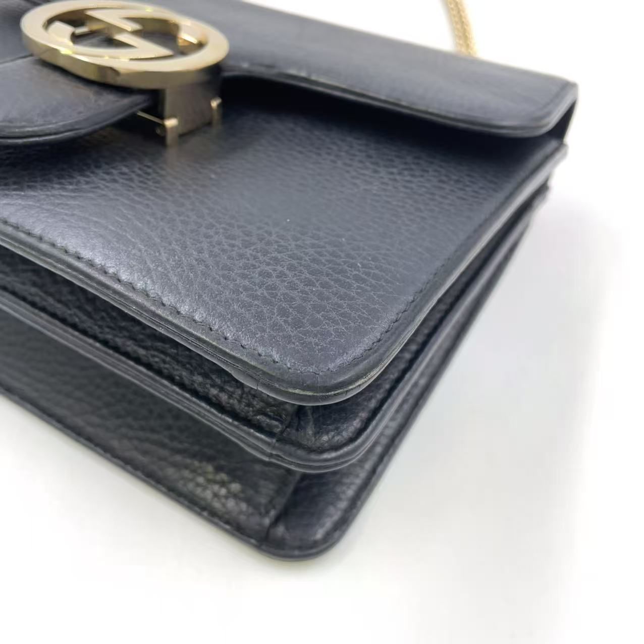 【商品名】GUCCI インターロッキングG チェーンショルダーバッグ レザー ブラック ショルダーバッグ ゴールド 510304