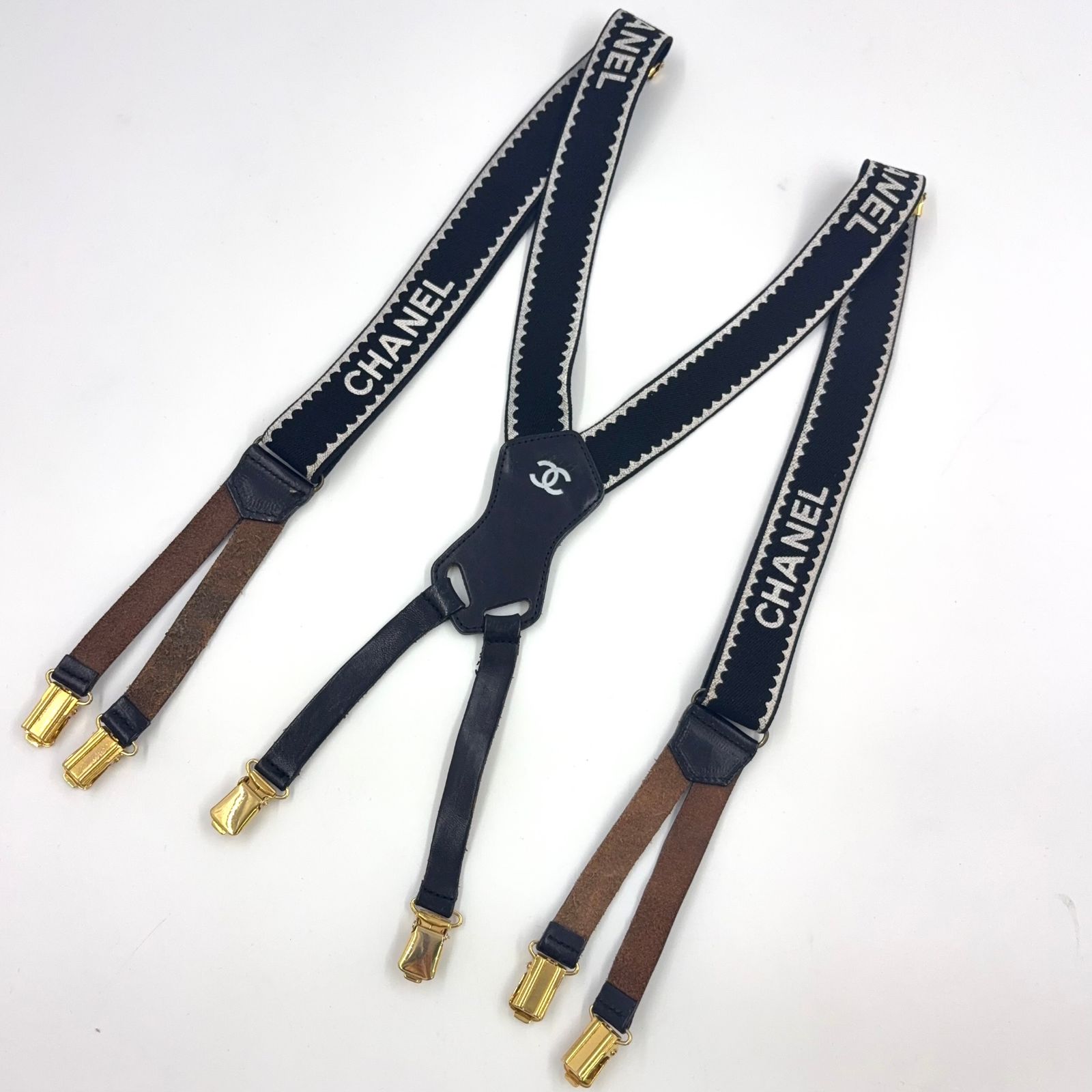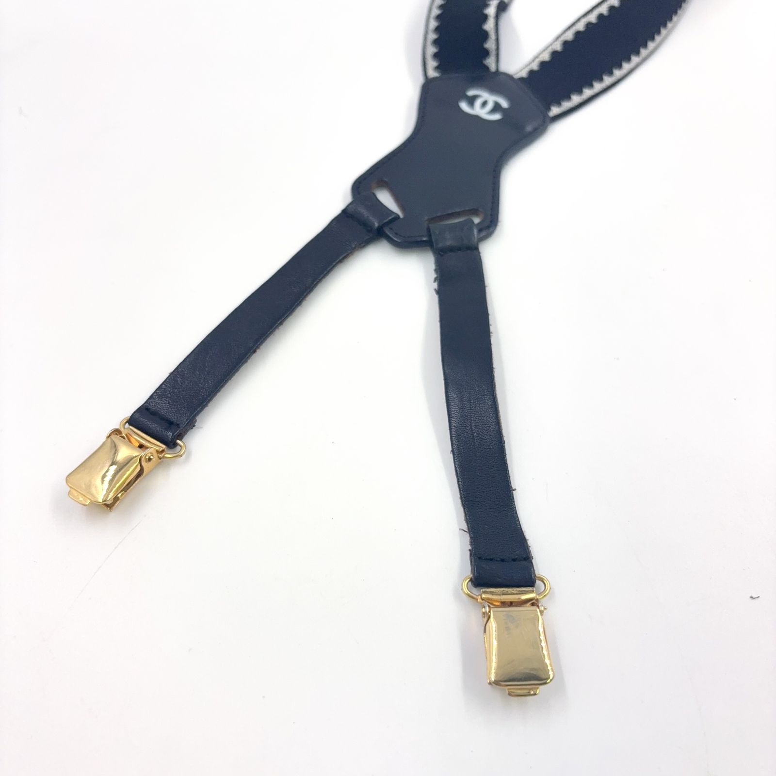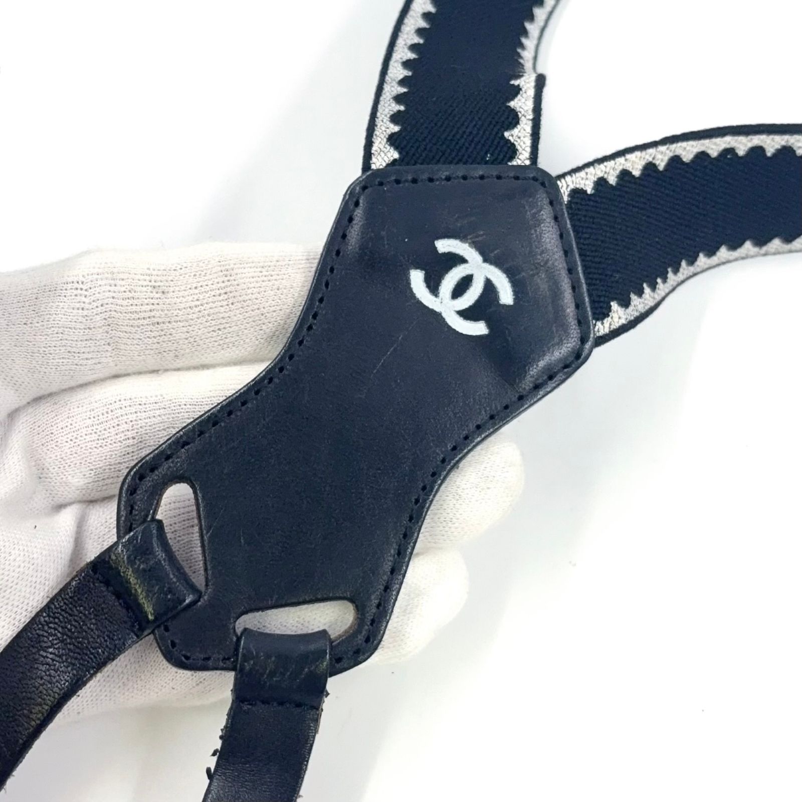 【商品名】CHANEL ココマーク ロゴ レザー×ゴム ブラック サスペンダー ゴールド