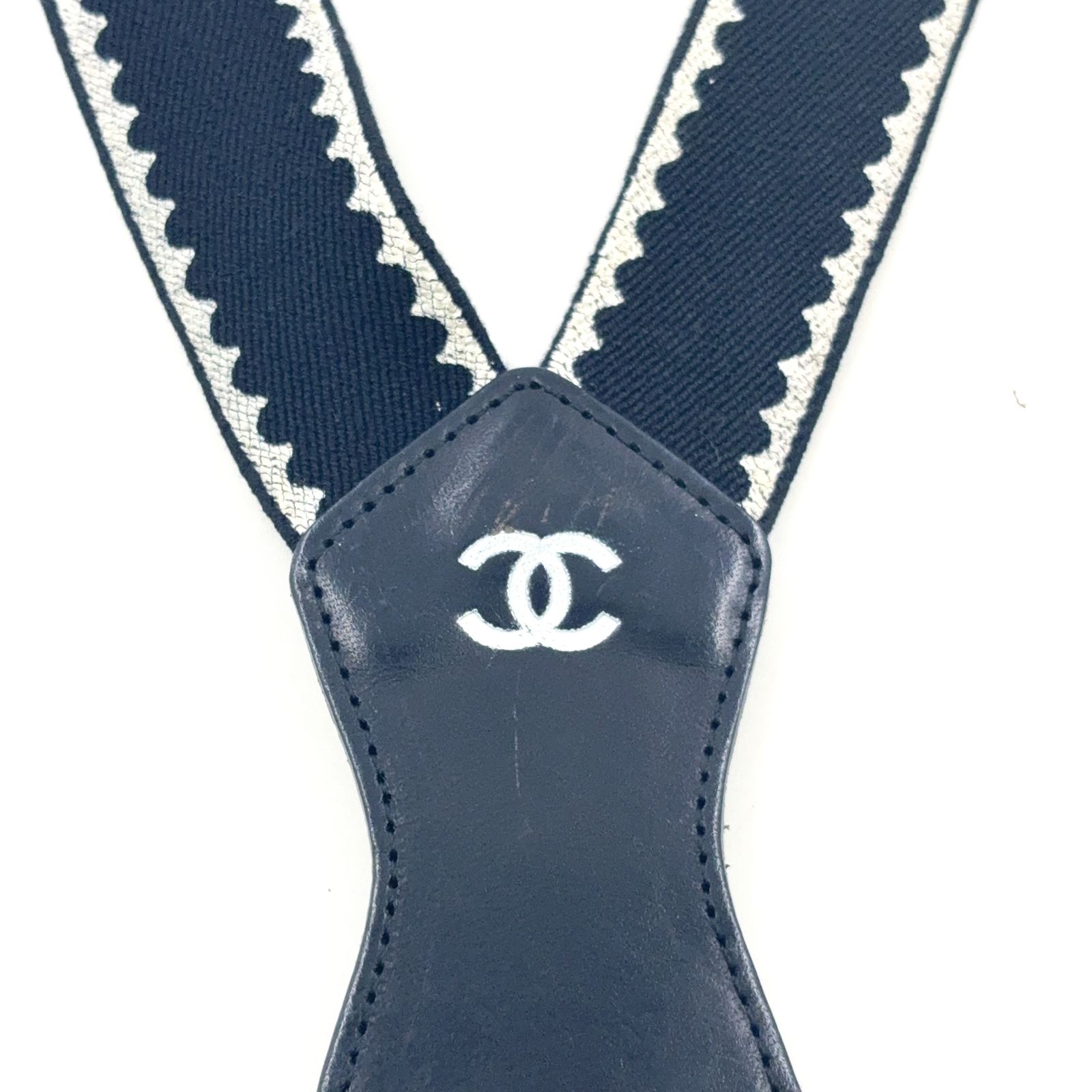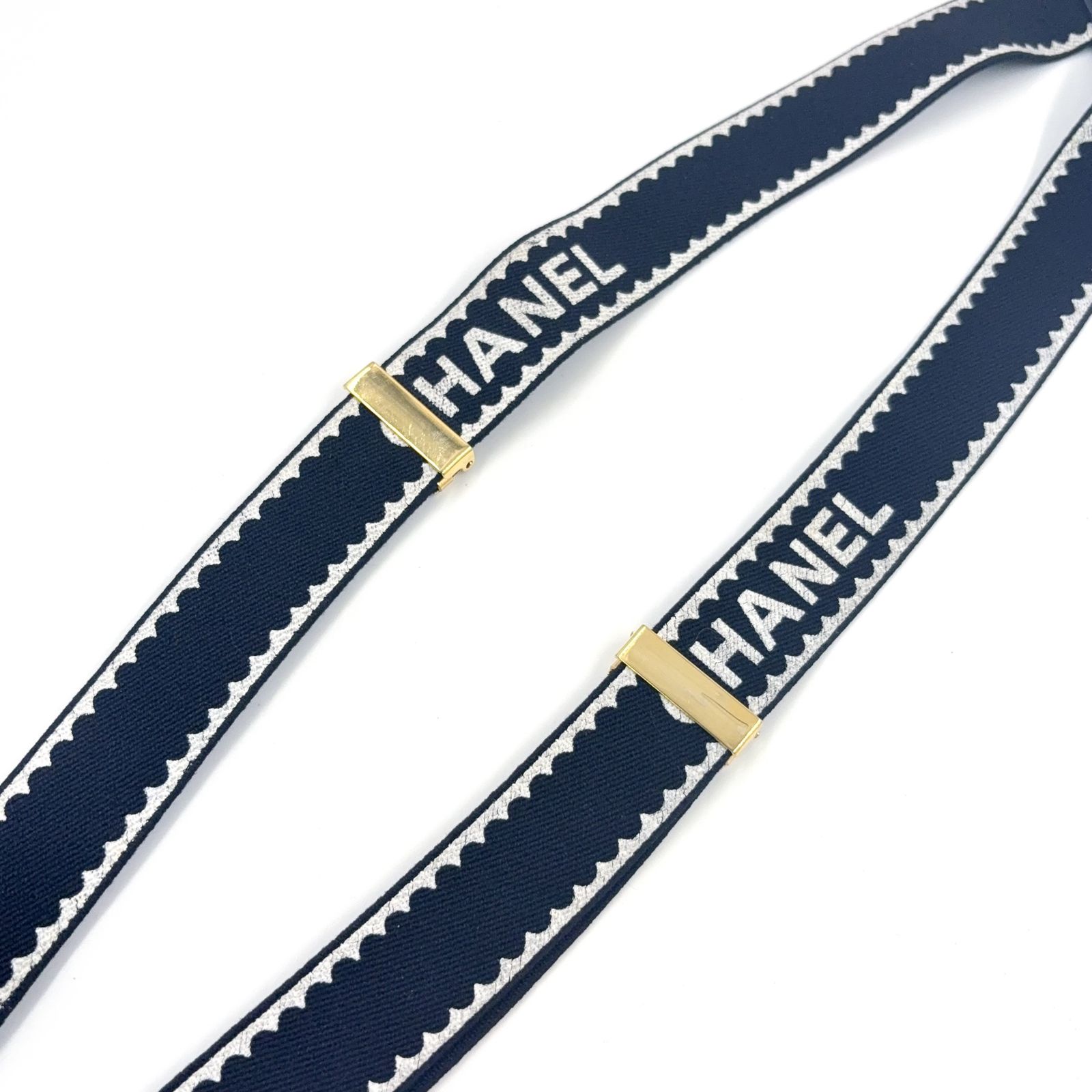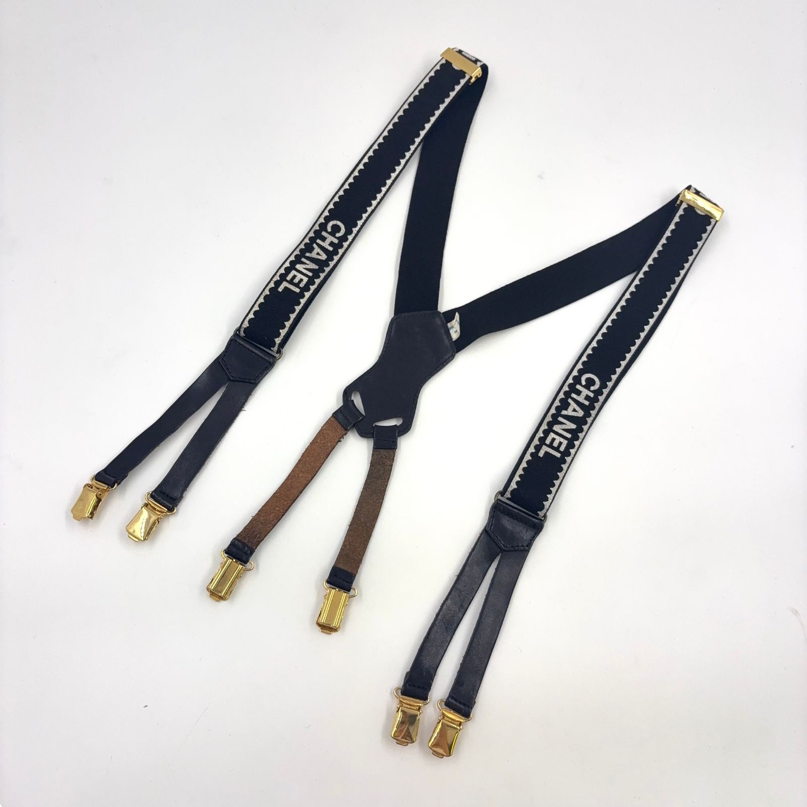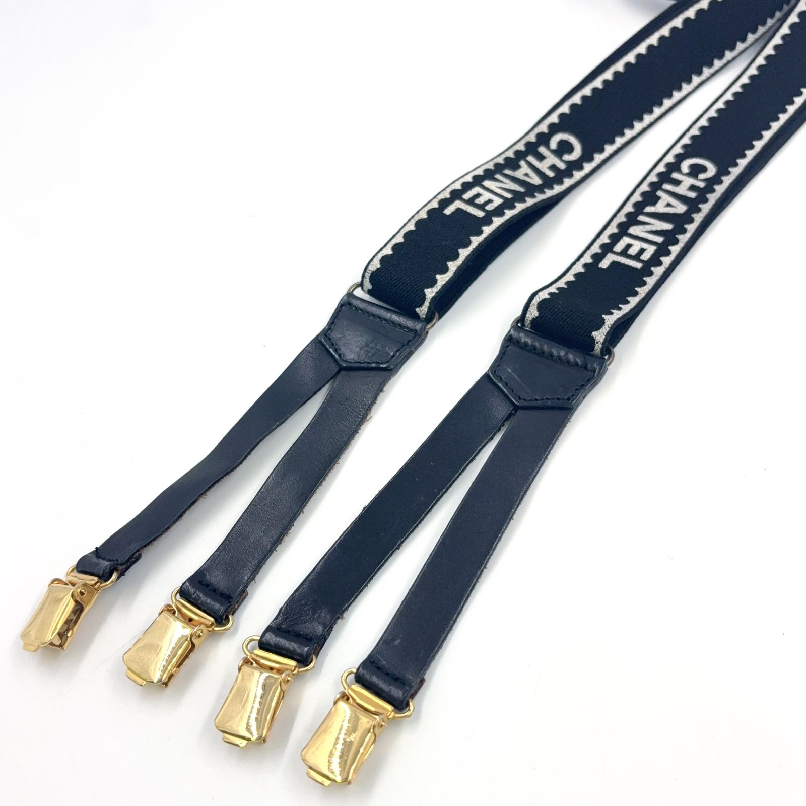【商品名】CHANEL ココマーク ロゴ レザー×ゴム ブラック サスペンダー ゴールド