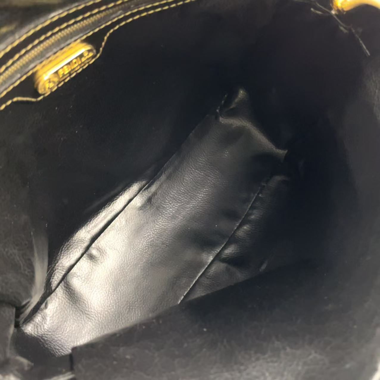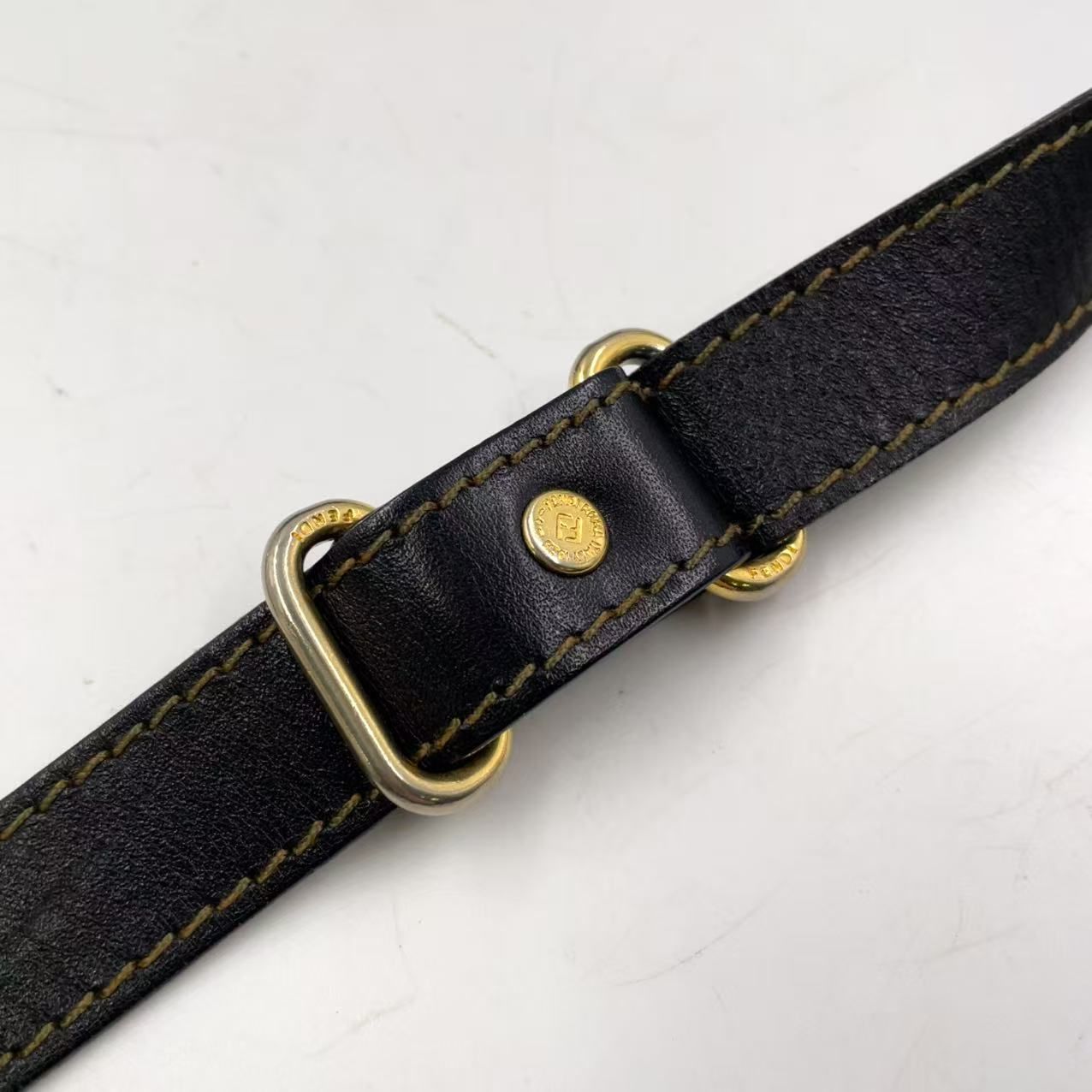 【商品名】FENDI ペカン柄 レザー×PVC ブラック×ベージュ ショルダーバッグ ゴールド