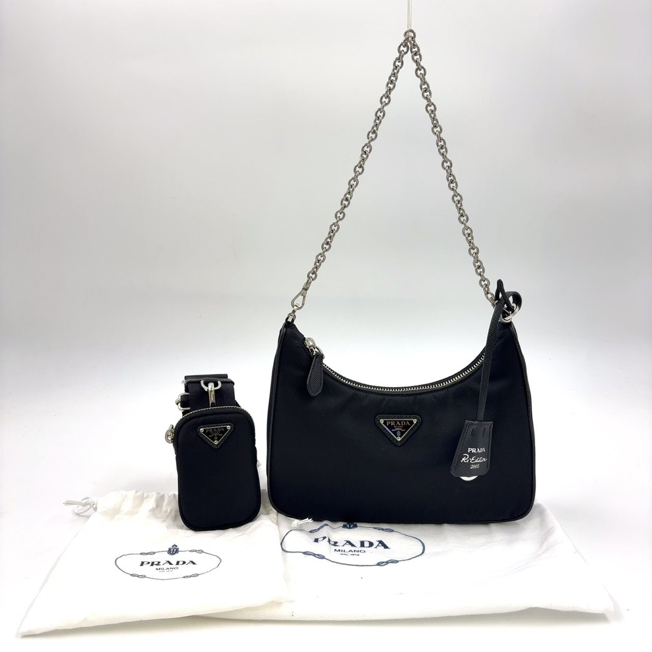 【商品名】PRADA 三角ロゴプレート 2WAY ナイロン ブラック ショルダーバッグ シルバー