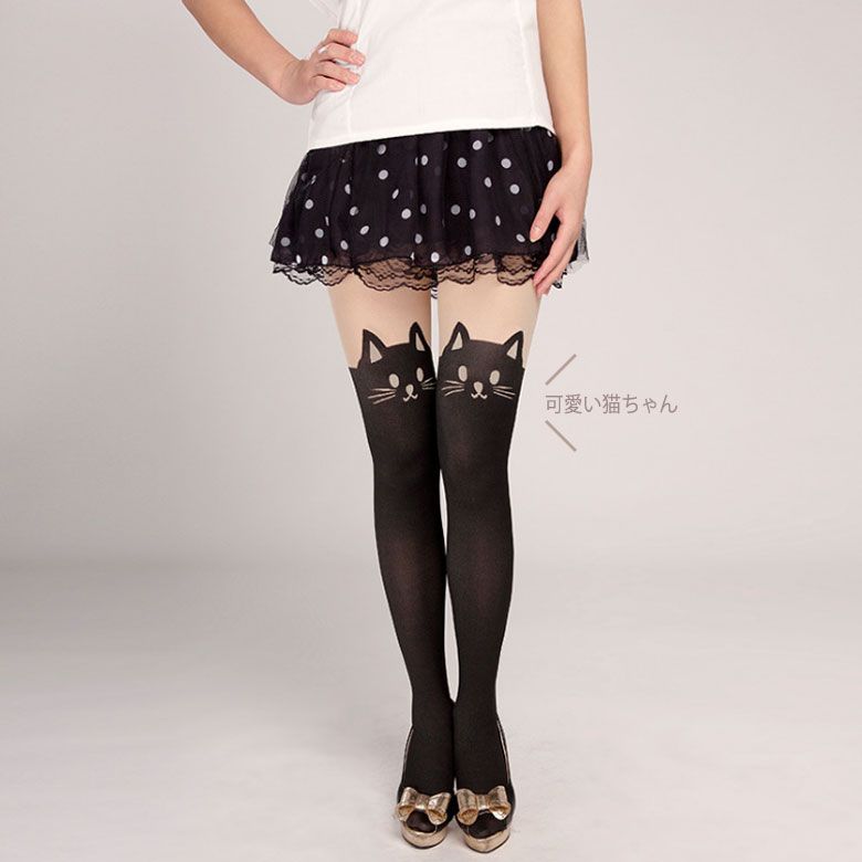 猫 柄 ネコ プリント 肌色 パンティーストッキング 美脚 効果 スリムレギンス /レディース 新作 ワンピース レギンス 結婚式 ドレス パーティー
