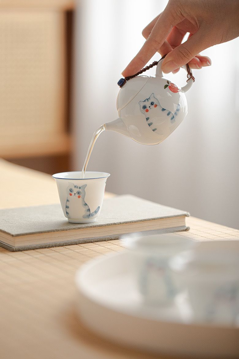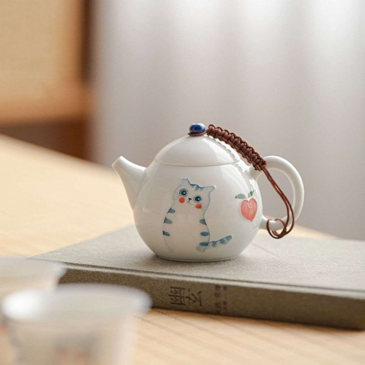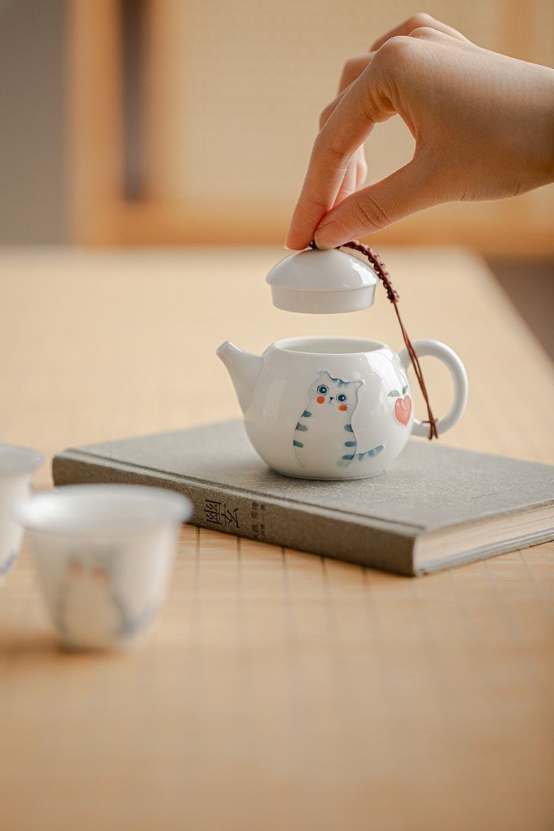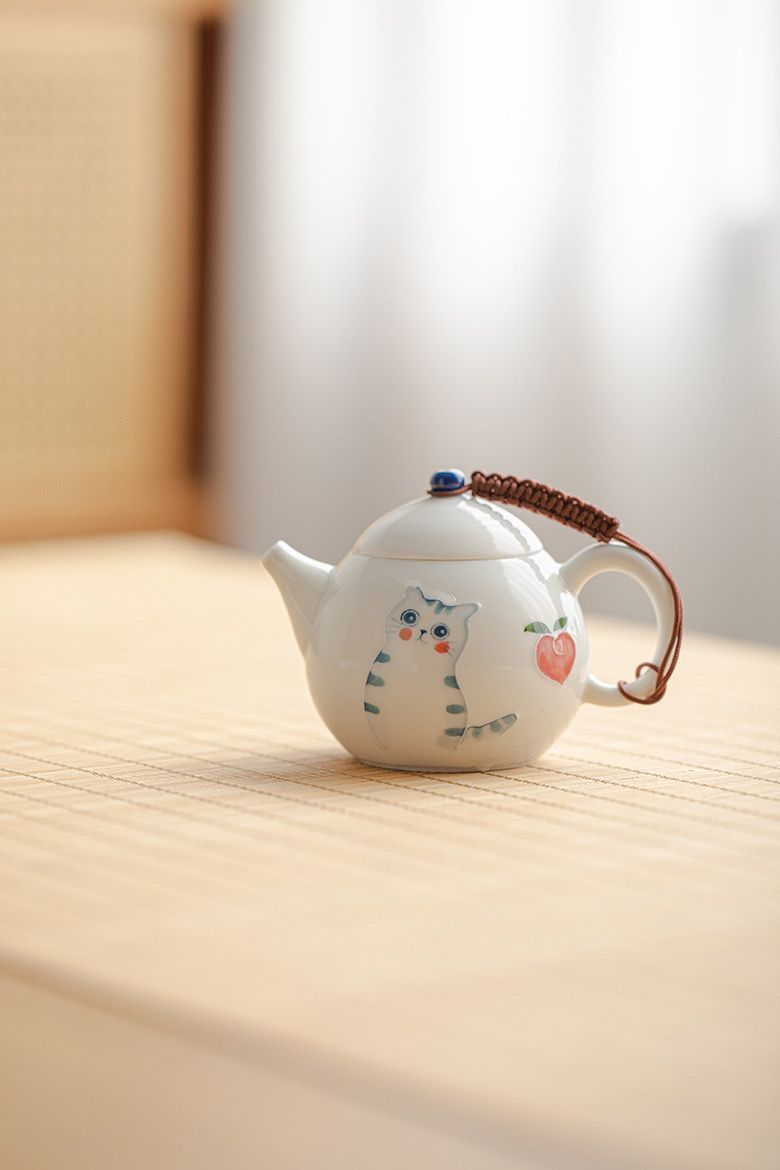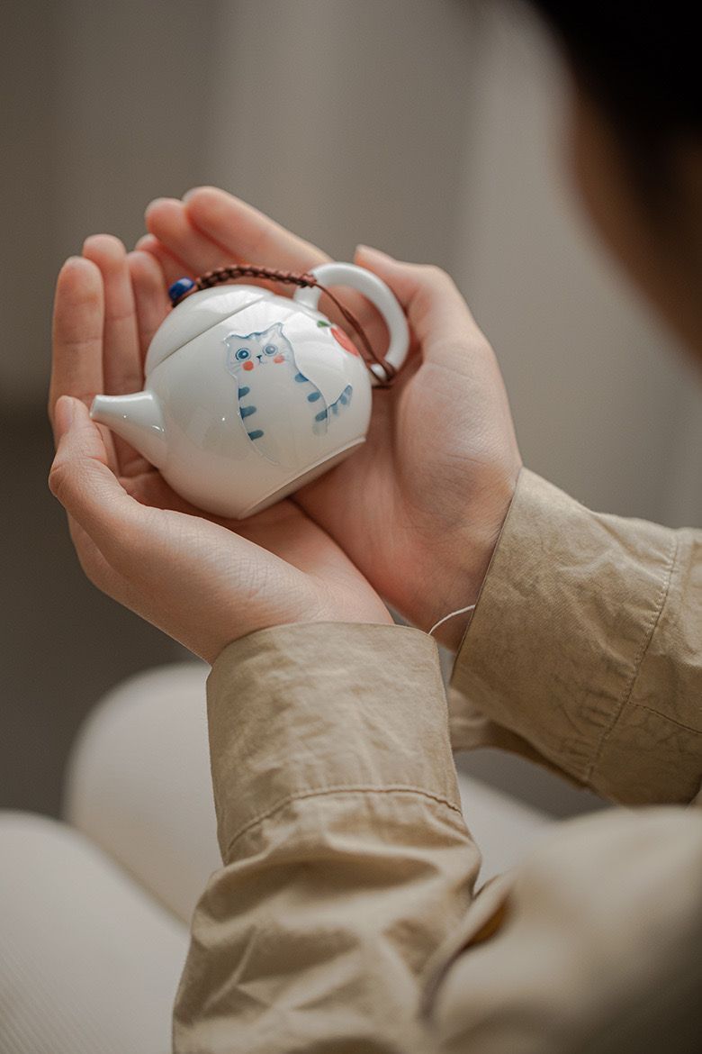 小さい 猫 急須 ティーポット 陶磁器 油差し 油ポット 一人暮らし かわいい おしゃれ 紅茶ポット 中国茶 プーアル茶 中国茶器 台湾茶器 敬老の日 彼女 母の日プレゼント ギフト 送料無料