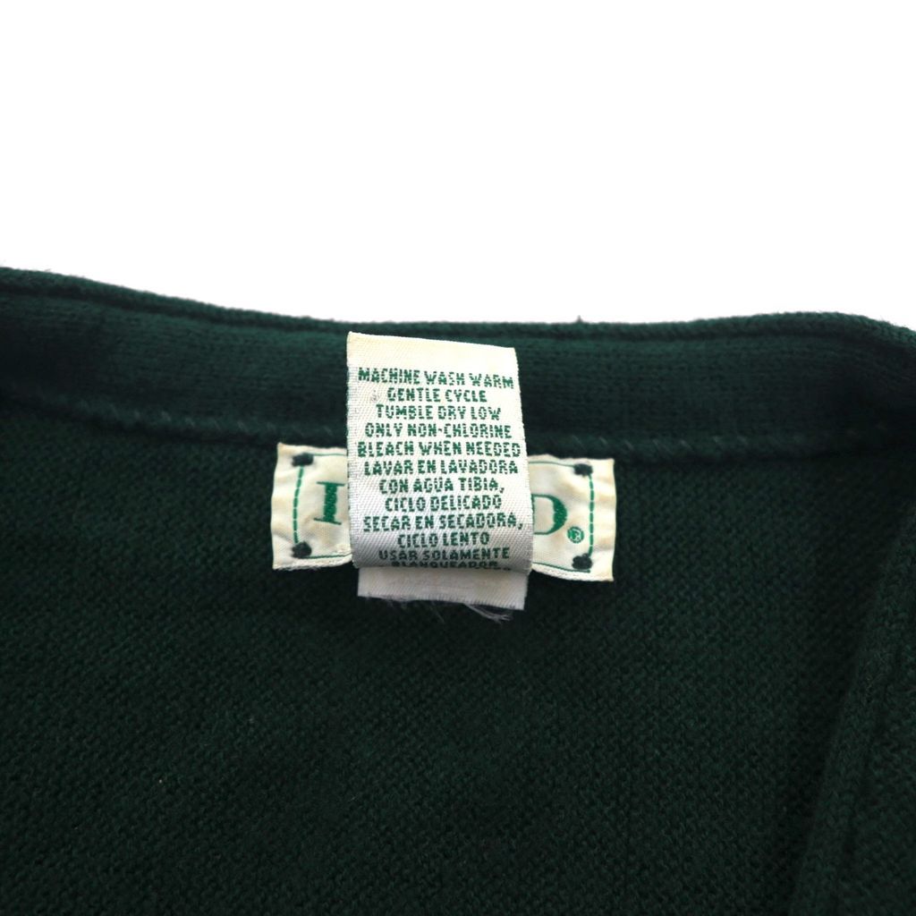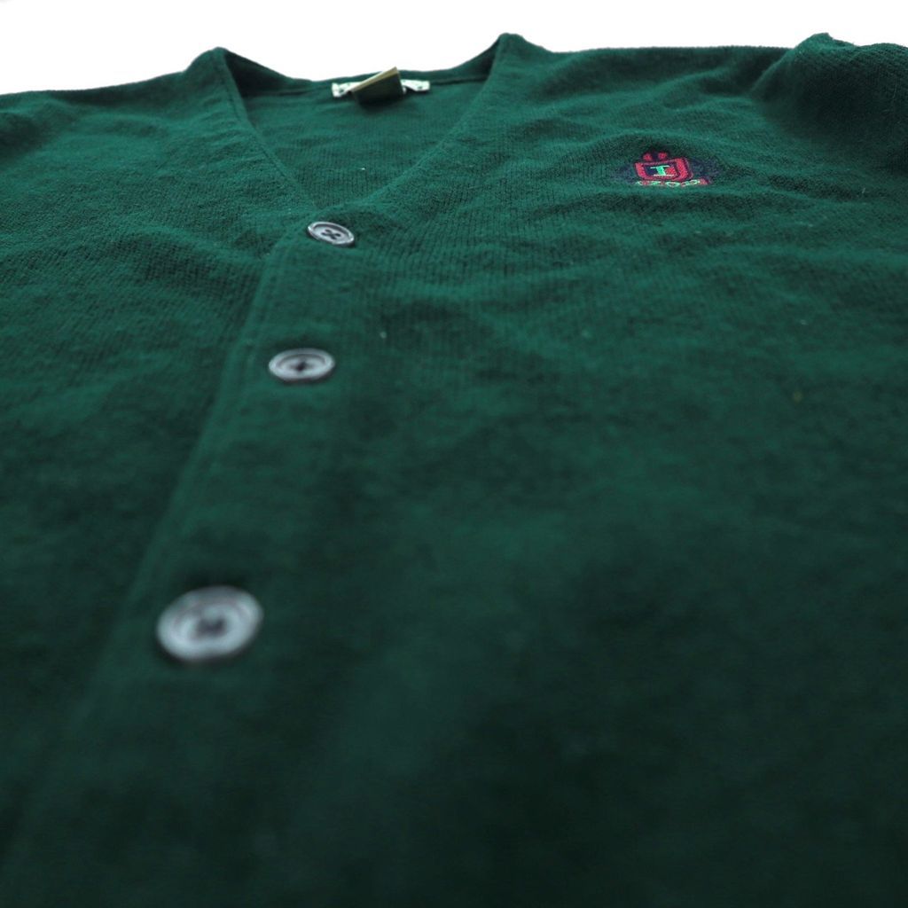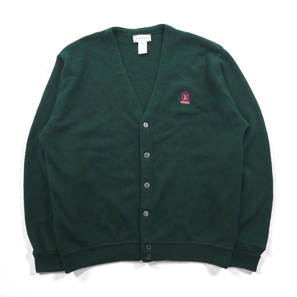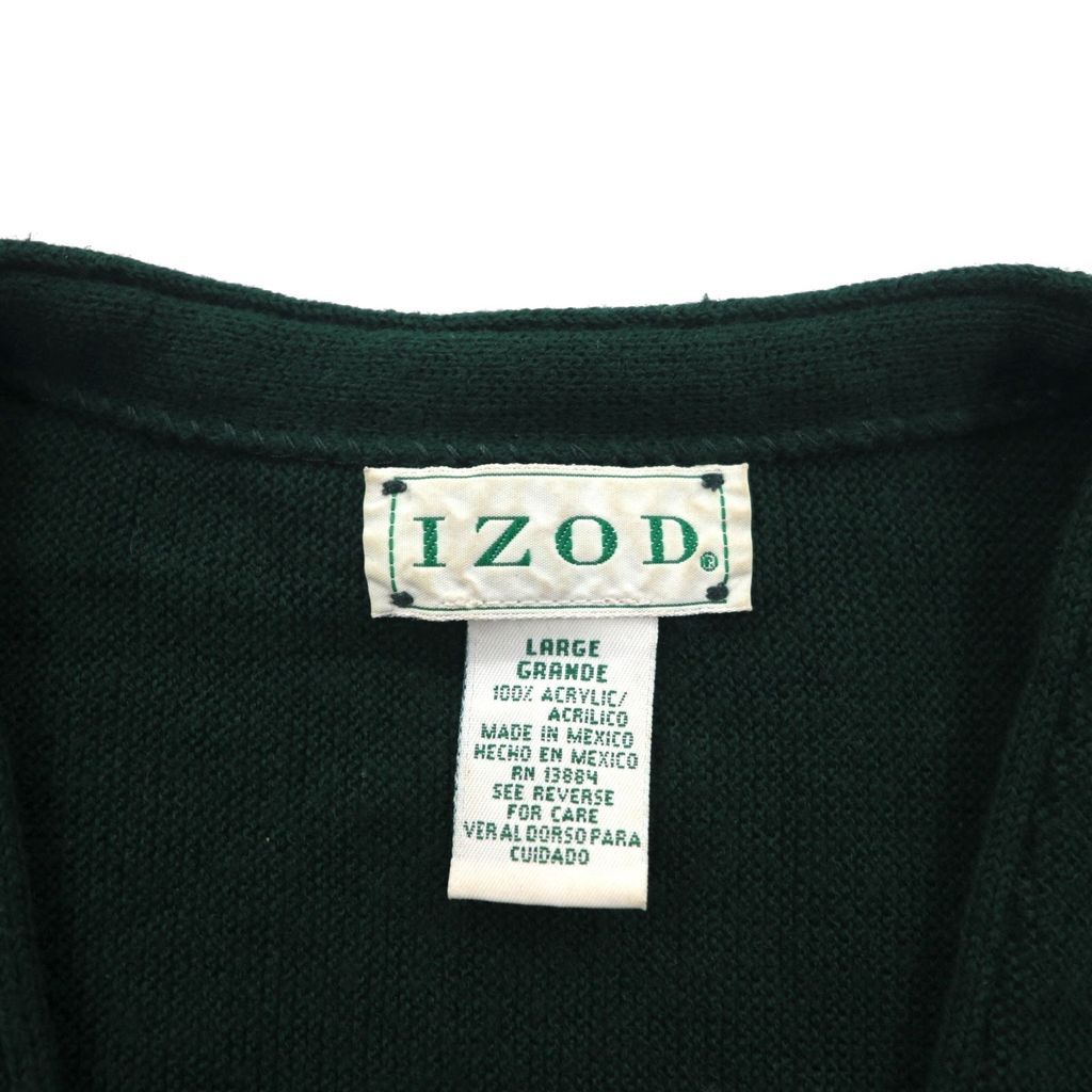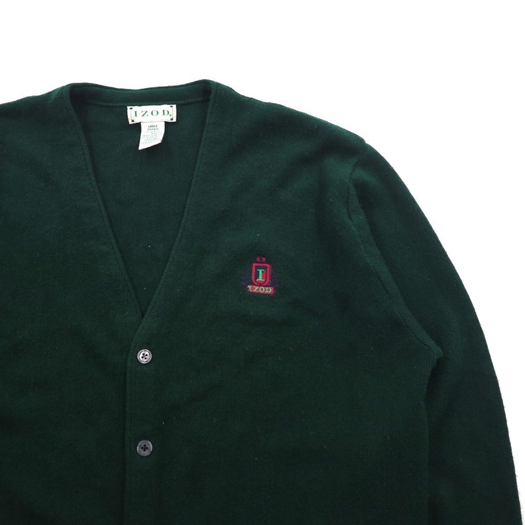IZOD 90年代 アクリル ニット Vネック カーディガン L グリーン ワンポイントロゴ