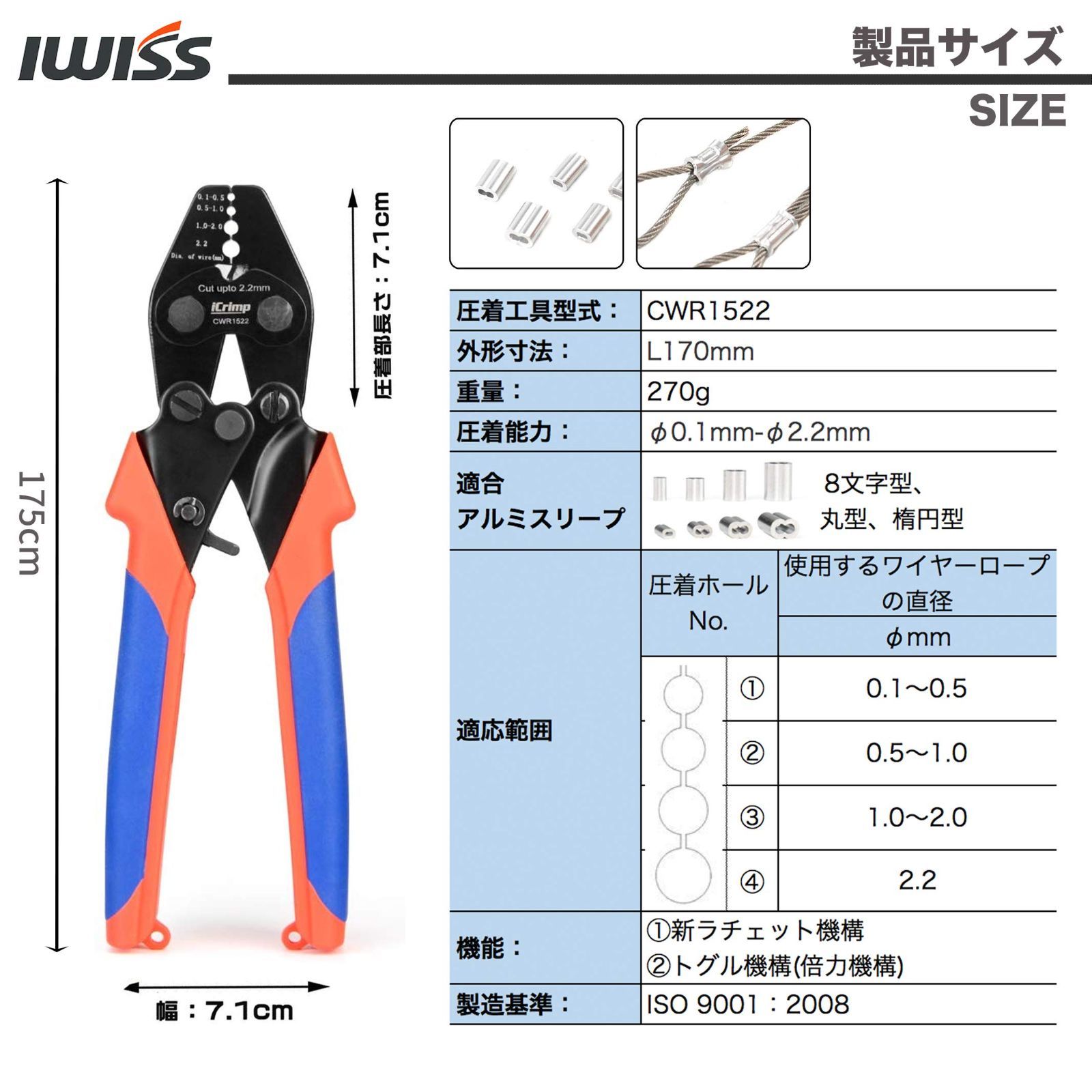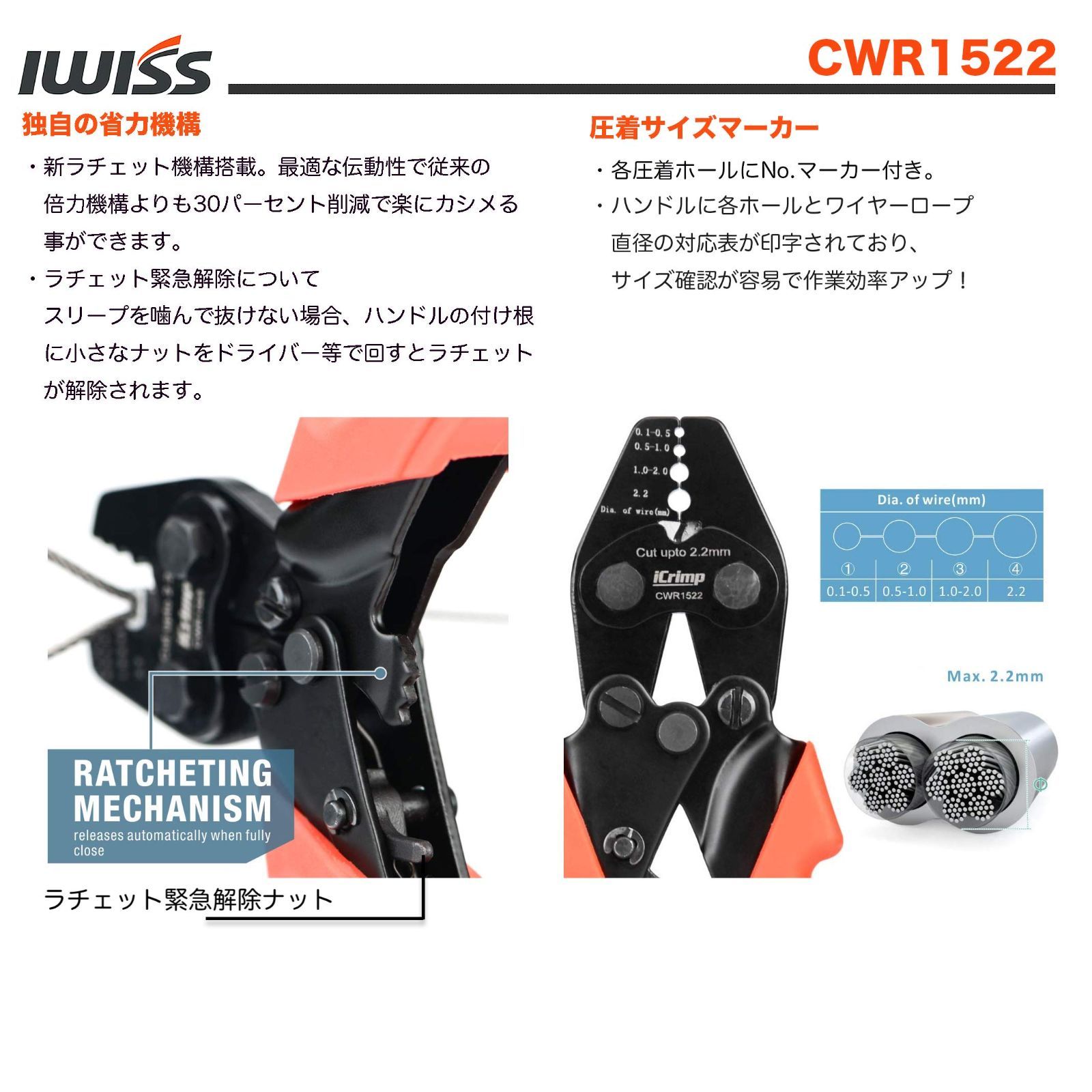 アイクリンプ(iCrimp) ラチェット式 ハンドプレッサー アルミスリーブ かしめ機 ワイヤークランプカッター 圧着 切断 1丁2役! φ0.1mm-φ2.2mm対応 CWR1522