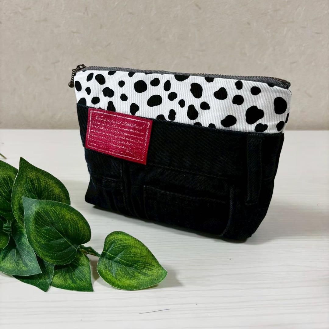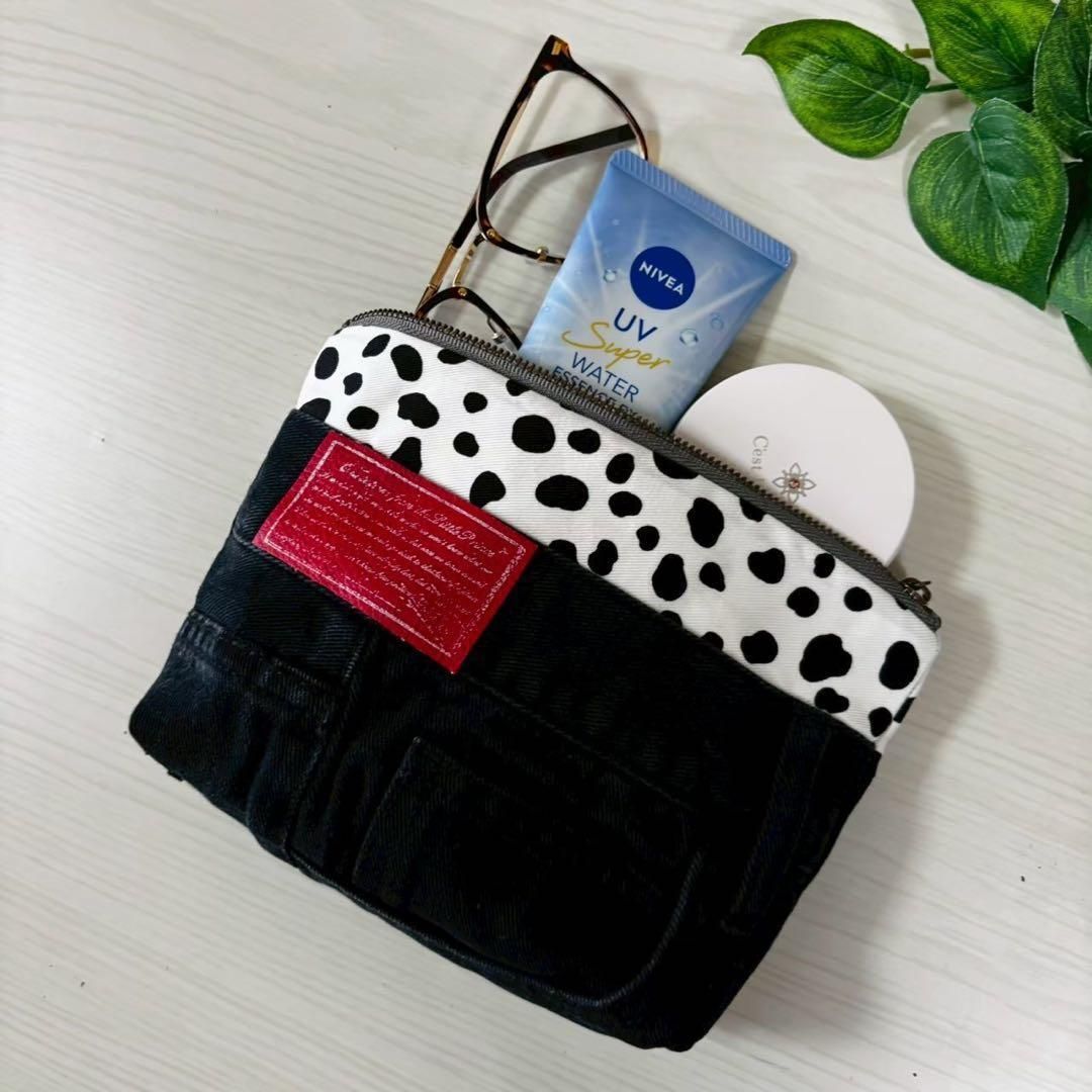 #pieceAmoバッグ #ピースアモバッグ #ハンドメイド #handmade #denim #デニムリメイク #ジーパンリメイク #ジーンズ #ジーパン #トートバッグ #ポーチ #アニマル柄 #ダルメシアン柄 #化粧ポーチ アップサイクル #upcycle