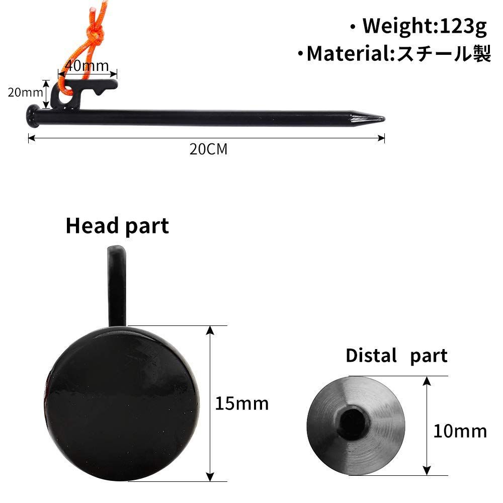 Soomloom スチール ソリッド テント ペグ テーク キャンプ設営用具 20CM …