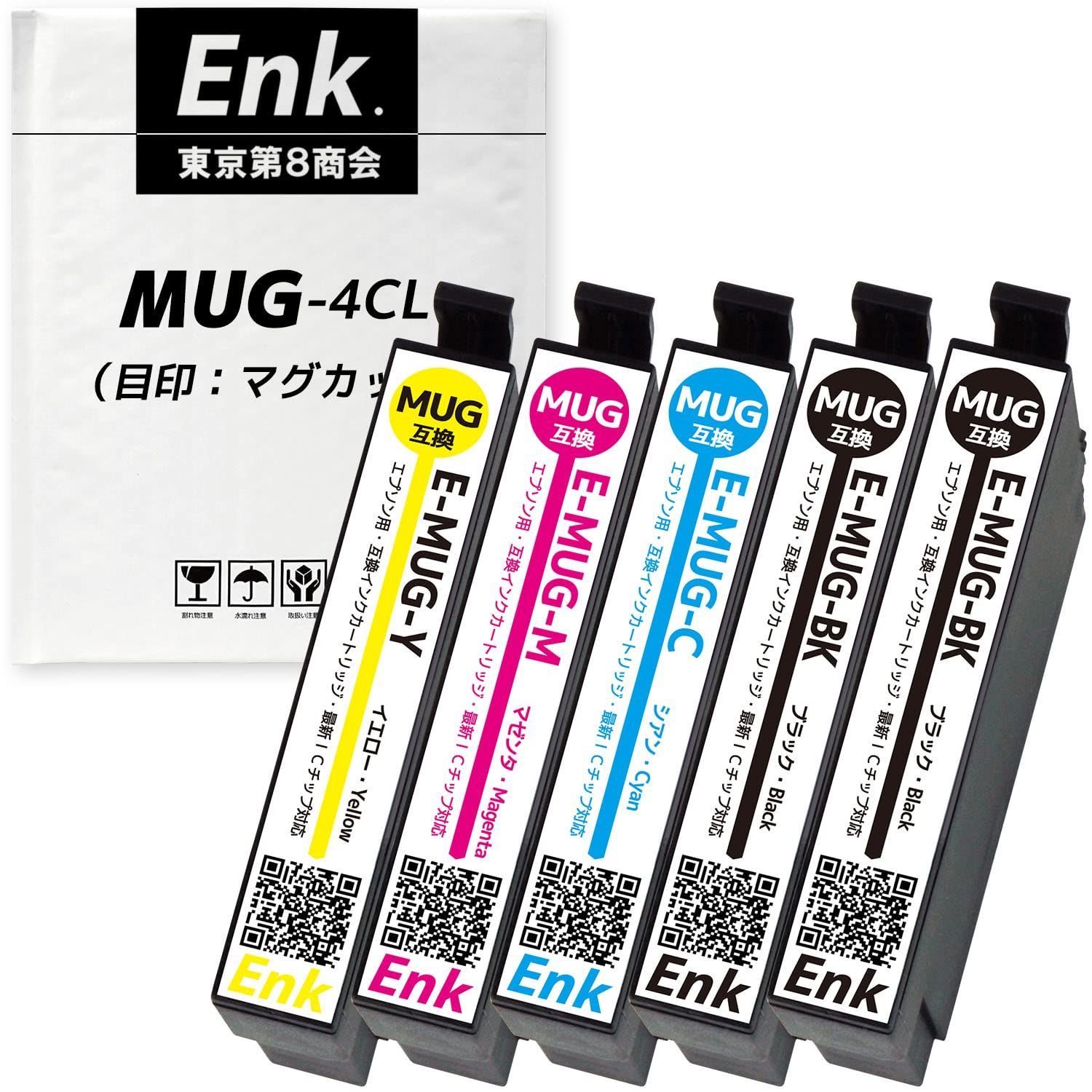 【Enk】製 MUG-4CL エプソン用 互換インク 互換インクカートリッジ 目印: まぐかっぷ 残量表示あり 最新ICチップ搭載 国内梱包検品済み QRコード読み取り型説明書導入 MUG (BK*2/C/M/Y)【4色+ブラック1本セット/計5本】